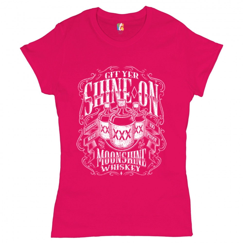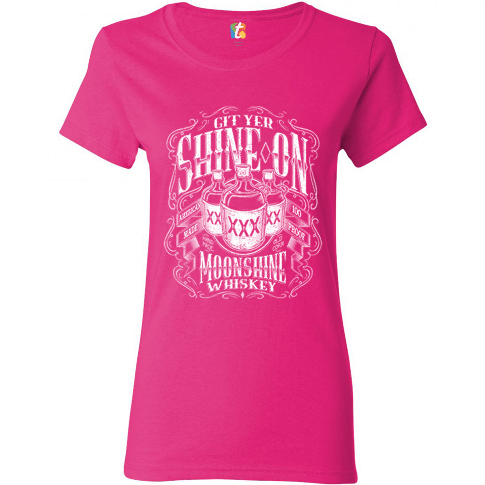 GIT YER SHINE ON MOONSHINE WHISKEY t-shirt xxx mason jars drinking women's tee pink