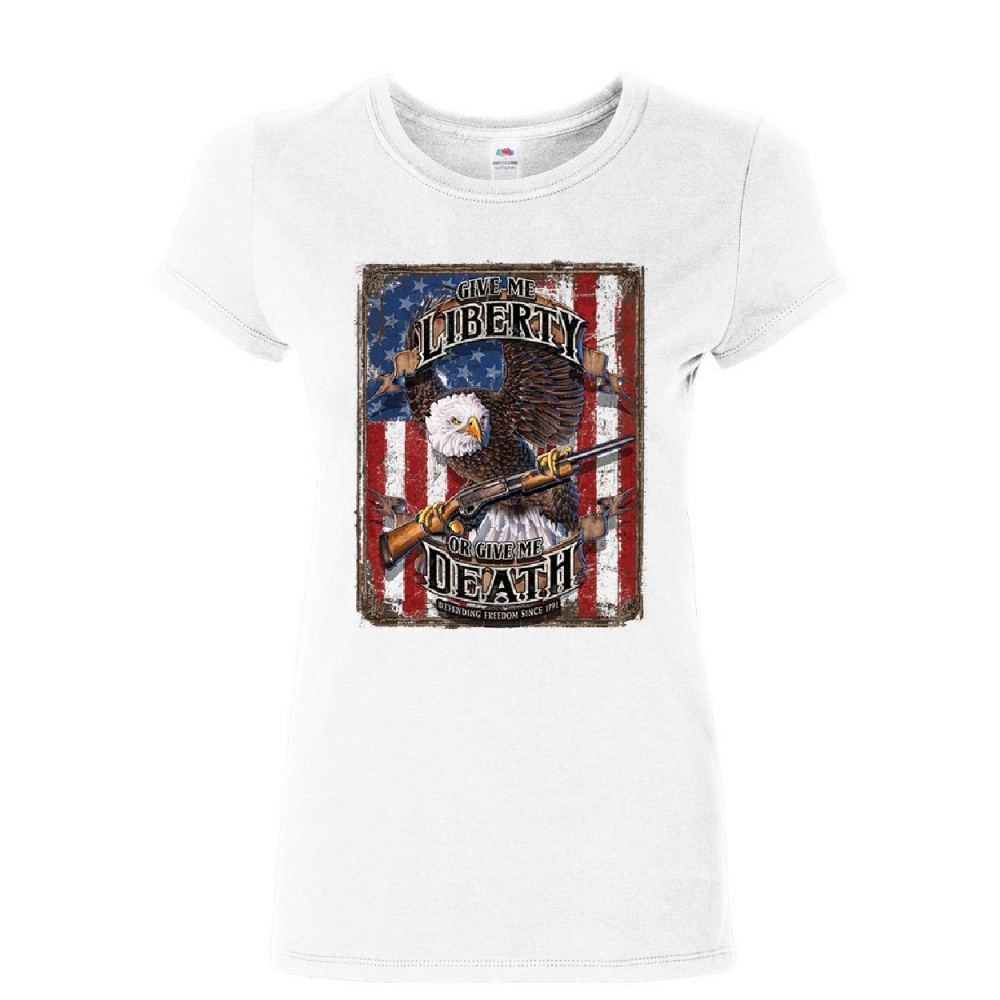 GIVE ME LIBERTY OR GIVE ME DEATH women's t-shirt eagle defend freedom 2a shirt white