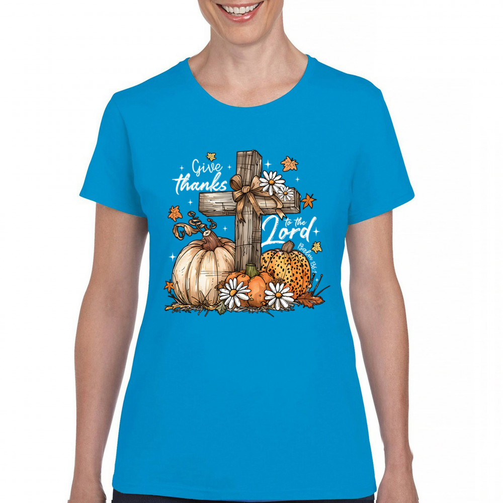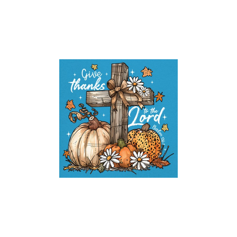Thanksgiving design with pumpkins, daisies, and rustic cross. Perfect for Turkey Day, faithful family gatherings, and fall festival blessings.