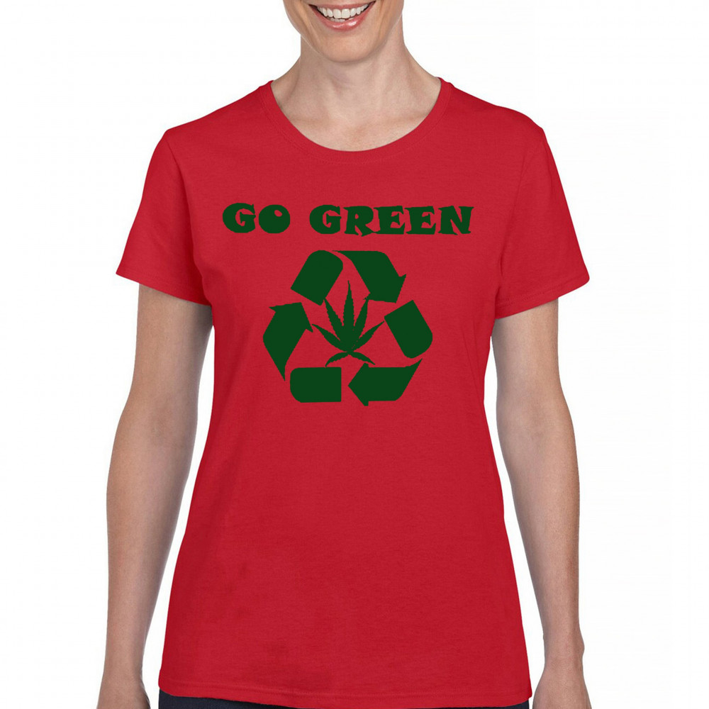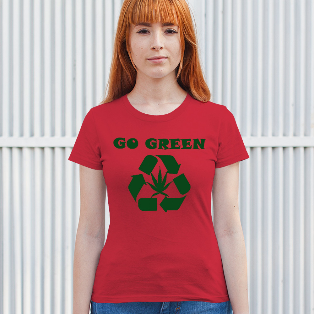 "Go Green" design combining a recycling symbol with a cannabis leaf. Perfect for those who love Mary Jane, sustainable living, and stoned humor.