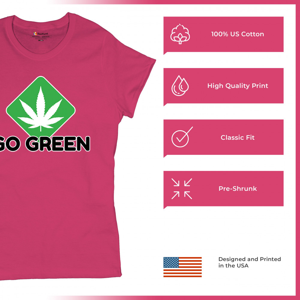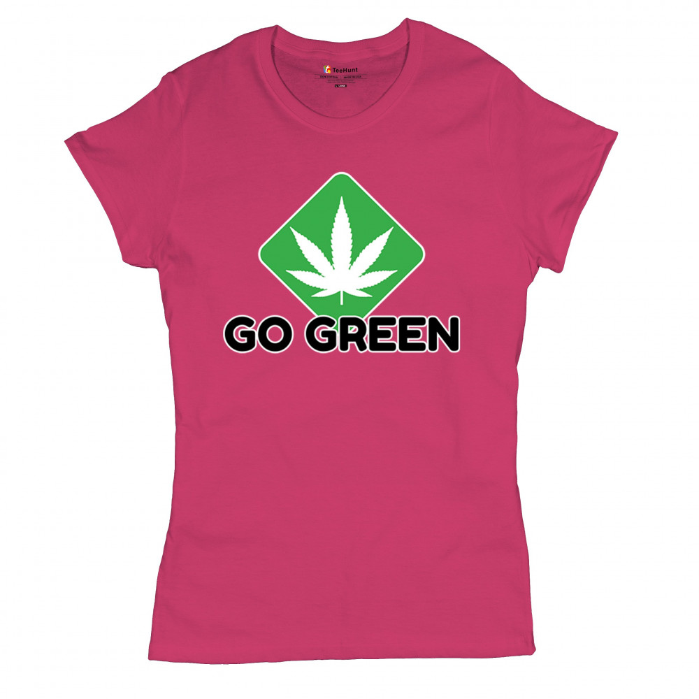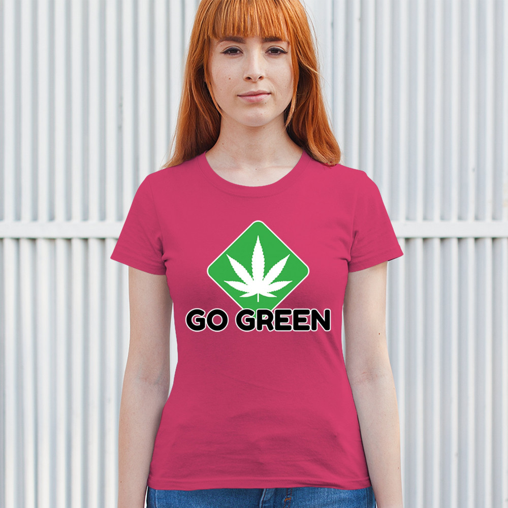 Bold Go Green design with cannabis leaf icon. Perfect for 420 fans, eco-conscious wearers, stoners, and marijuana advocates.