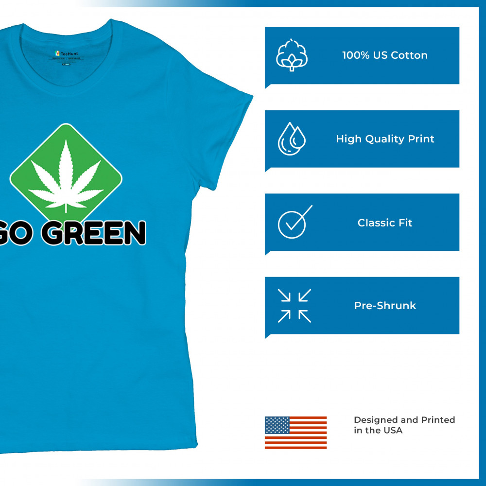 Bold Go Green design with cannabis leaf icon. Perfect for 420 fans, eco-conscious wearers, stoners, and marijuana advocates.