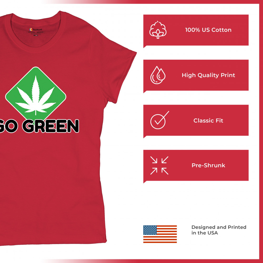 Bold Go Green design with cannabis leaf icon. Perfect for 420 fans, eco-conscious wearers, stoners, and marijuana advocates.