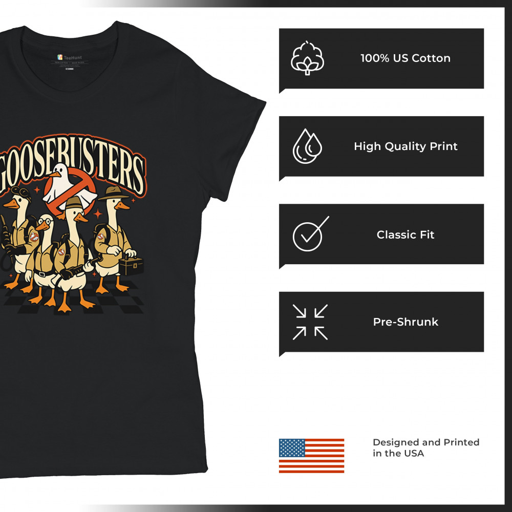 Celebrate October 31 with our Goosebusters shirt—a perfect mix of spooky and parody fun. This halloween goose design combines silly goose humor with ghost-busting style, making it a must-have for fans of funny goose shirts and spooky goose shirts. Ideal as a goose costume tee, goose parody shirt, or comedy bird shirt, this silly design adds Trick or Treat laughter to any haunted house or scary night.