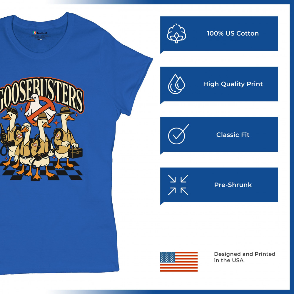 Celebrate October 31 with our Goosebusters shirt—a perfect mix of spooky and parody fun. This halloween goose design combines silly goose humor with ghost-busting style, making it a must-have for fans of funny goose shirts and spooky goose shirts. Ideal as a goose costume tee, goose parody shirt, or comedy bird shirt, this silly design adds Trick or Treat laughter to any haunted house or scary night.