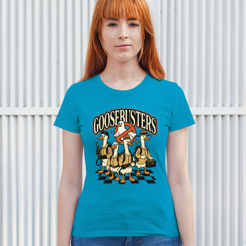 Celebrate October 31 with our Goosebusters shirt—a perfect mix of spooky and parody fun. This halloween goose design combines silly goose humor with ghost-busting style, making it a must-have for fans of funny goose shirts and spooky goose shirts. Ideal as a goose costume tee, goose parody shirt, or comedy bird shirt, this silly design adds Trick or Treat laughter to any haunted house or scary night.
