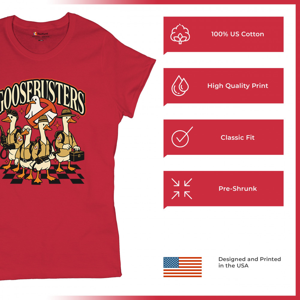 Celebrate October 31 with our Goosebusters shirt—a perfect mix of spooky and parody fun. This halloween goose design combines silly goose humor with ghost-busting style, making it a must-have for fans of funny goose shirts and spooky goose shirts. Ideal as a goose costume tee, goose parody shirt, or comedy bird shirt, this silly design adds Trick or Treat laughter to any haunted house or scary night.