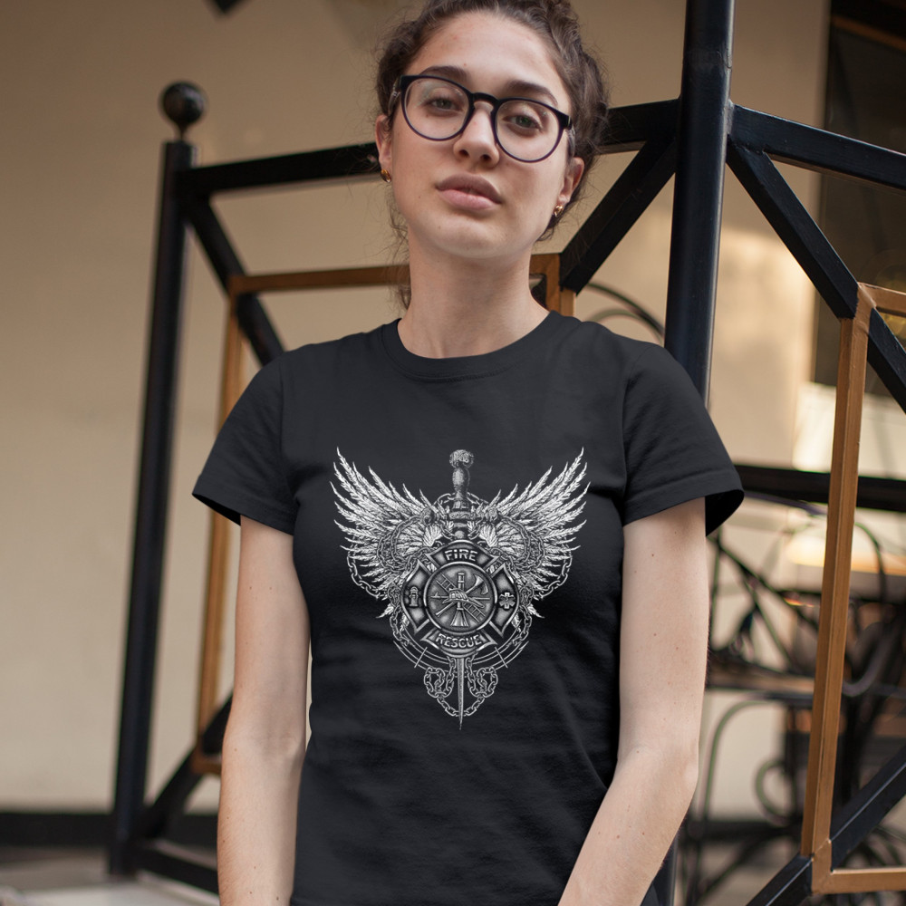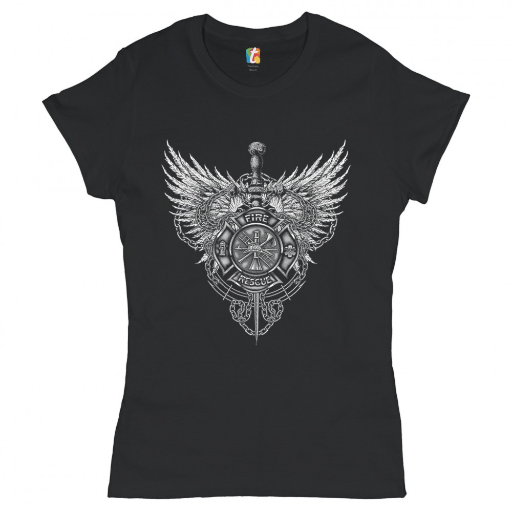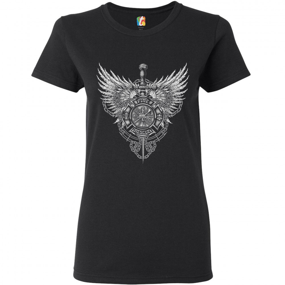GOTHIC FIREFIGHTER EMBLEM t-shirt courage honor sacrifice women's tee black