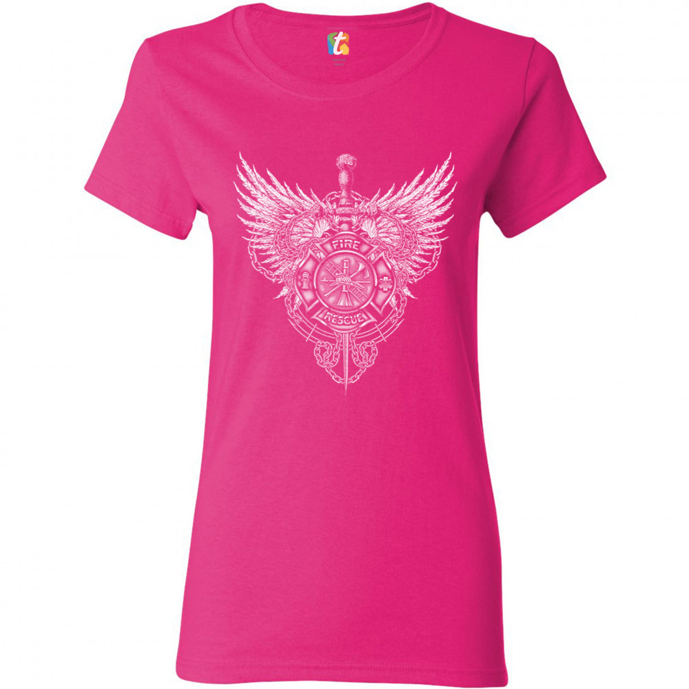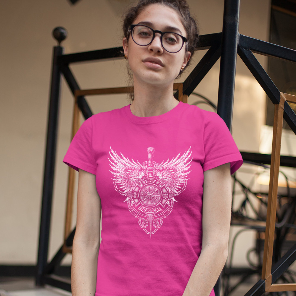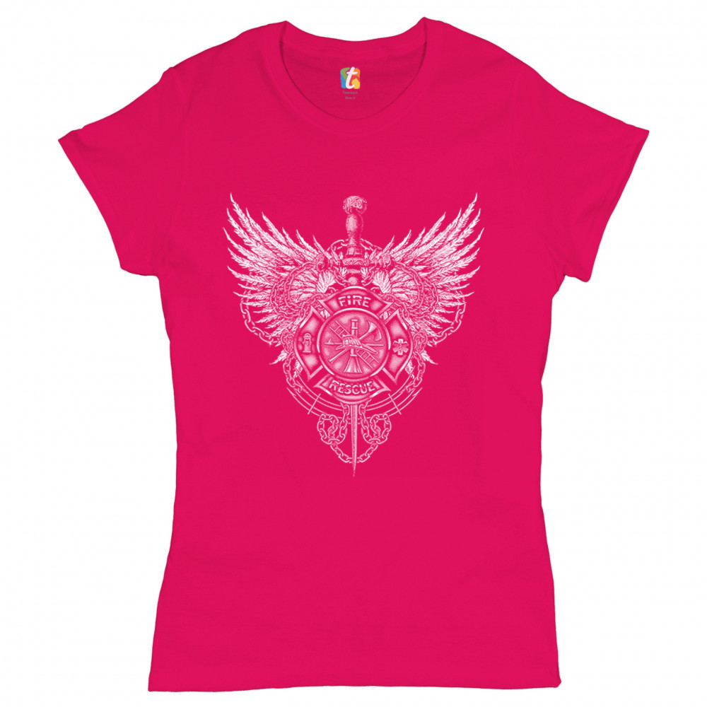 GOTHIC FIREFIGHTER EMBLEM t-shirt courage honor sacrifice women's tee pink