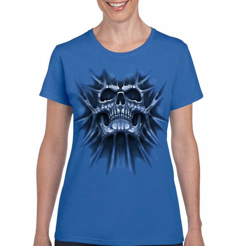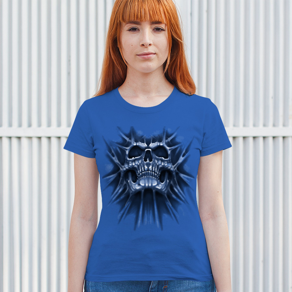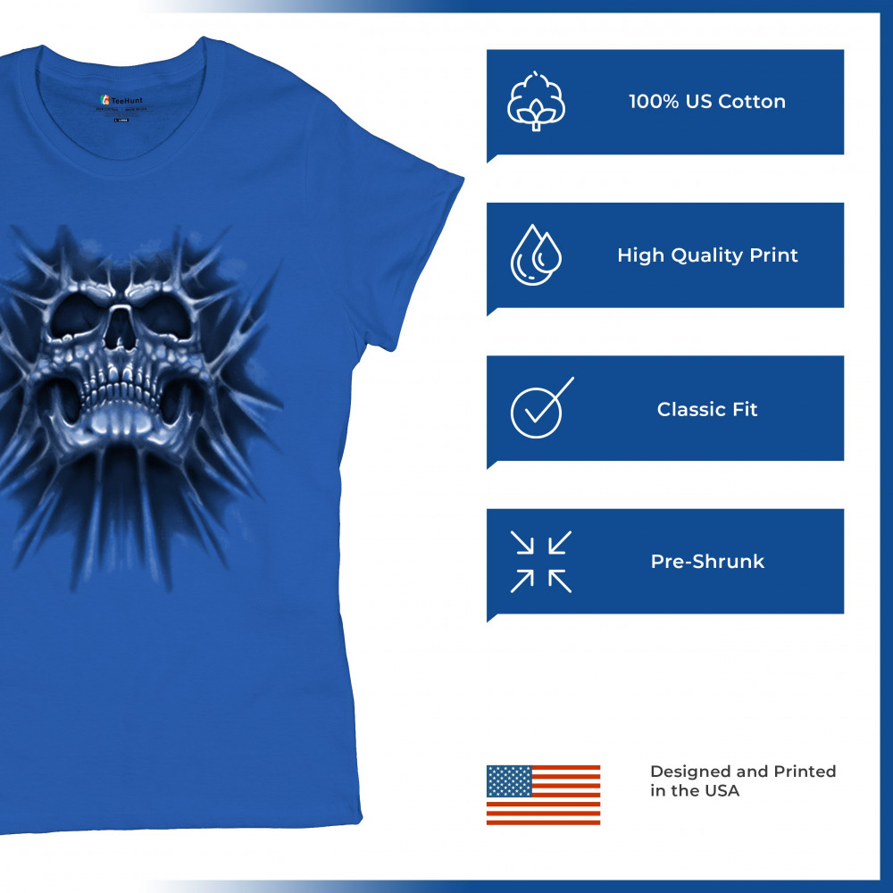 Gothic skull biker shirt with roots design. Perfect for Metalhead, Rock n Roll fans, edgy rebel fashion, and spooky Halloween vibes.