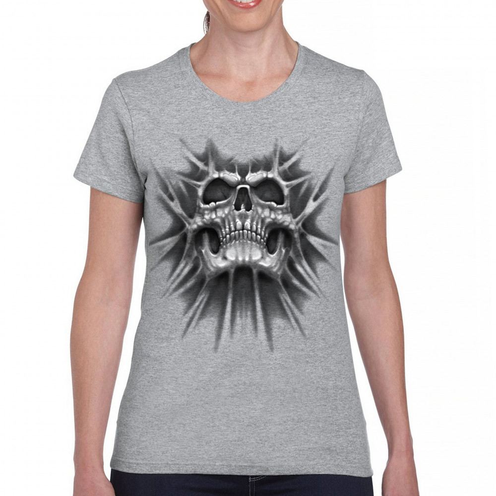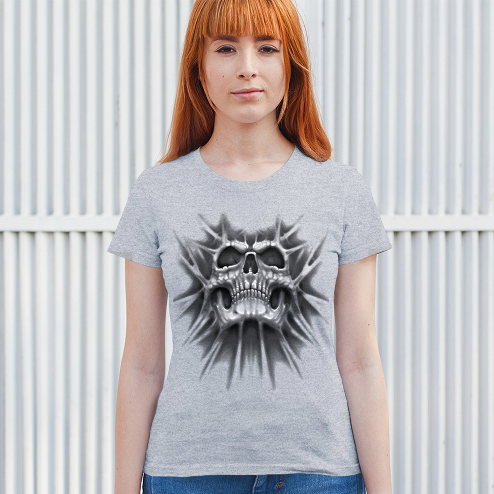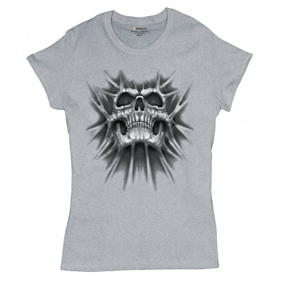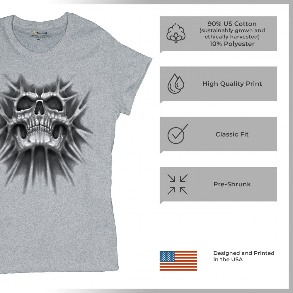 Gothic skull biker shirt with roots design. Perfect for Metalhead, Rock n Roll fans, edgy rebel fashion, and spooky Halloween vibes.