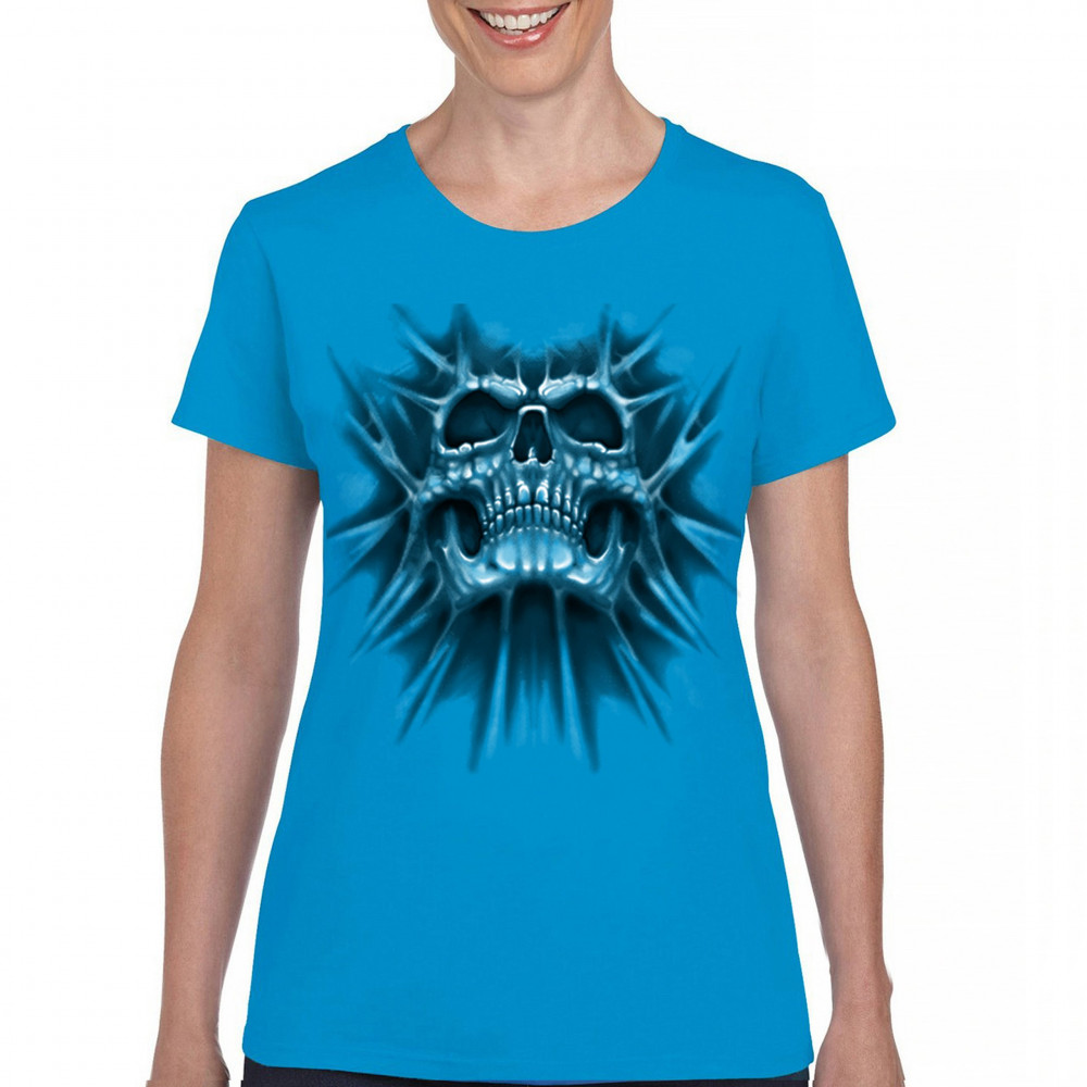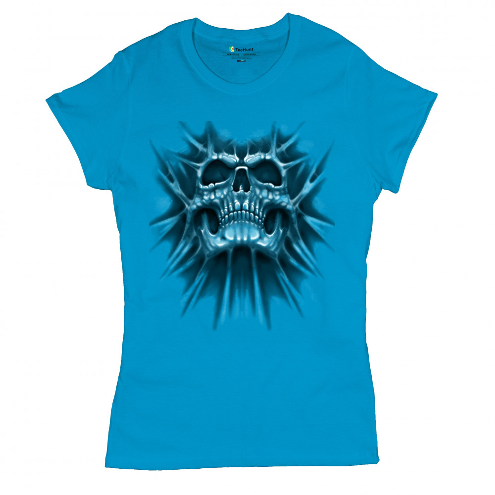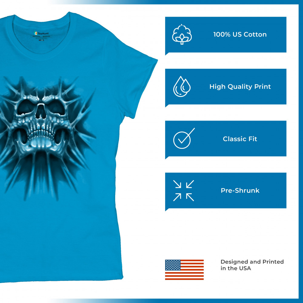 Gothic skull biker shirt with roots design. Perfect for Metalhead, Rock n Roll fans, edgy rebel fashion, and spooky Halloween vibes.