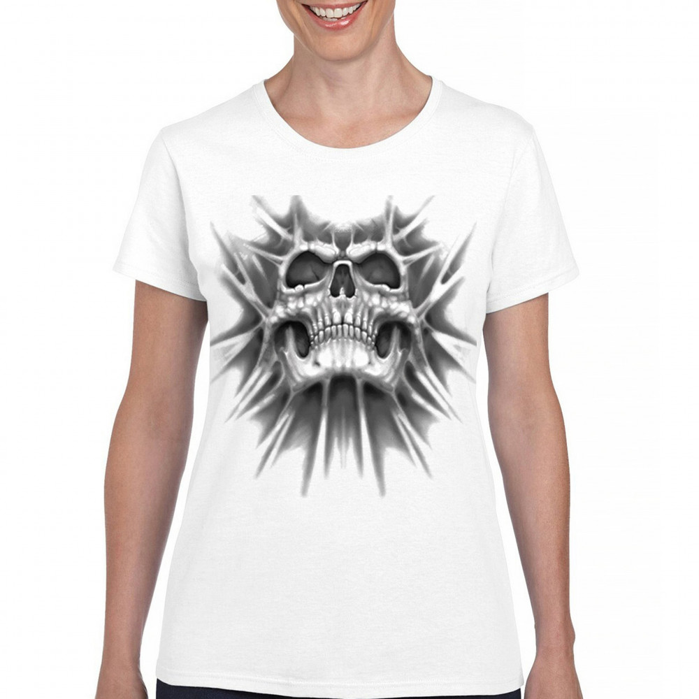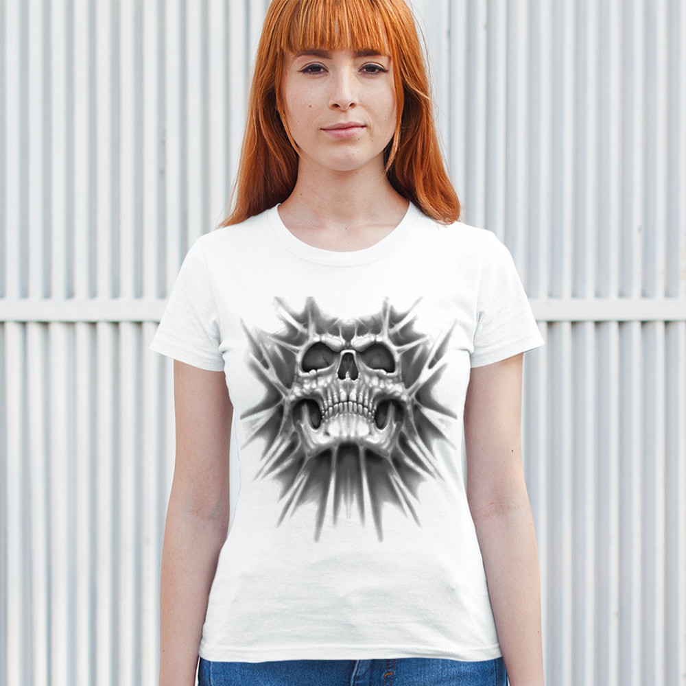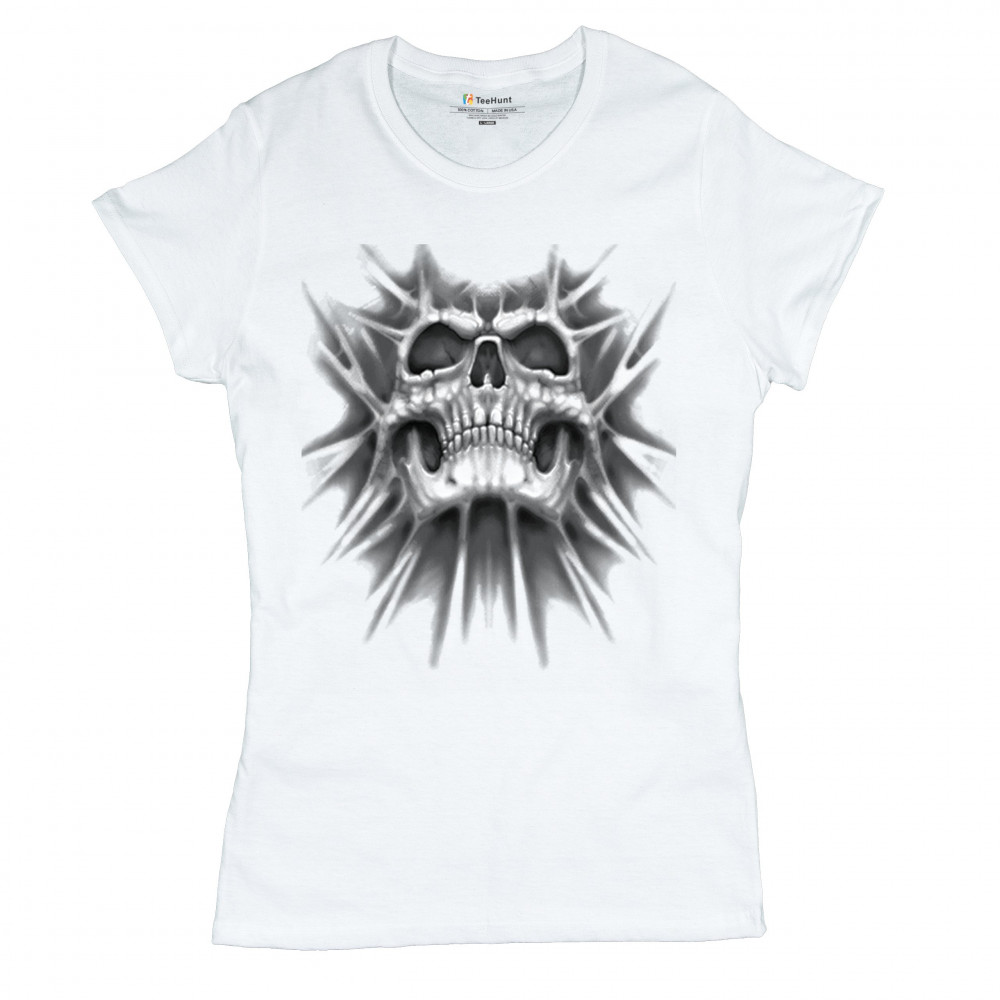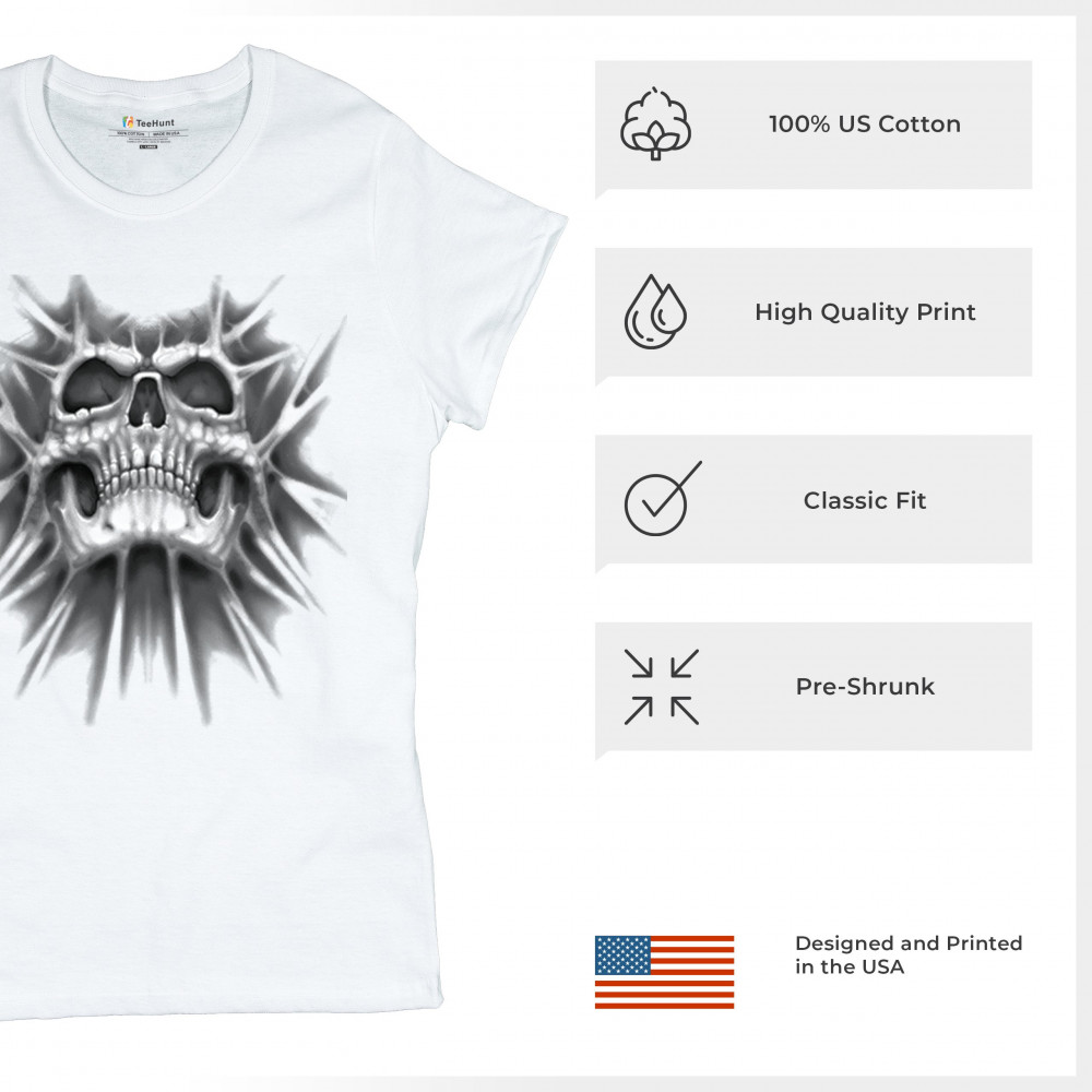 Gothic skull biker shirt with roots design. Perfect for Metalhead, Rock n Roll fans, edgy rebel fashion, and spooky Halloween vibes.