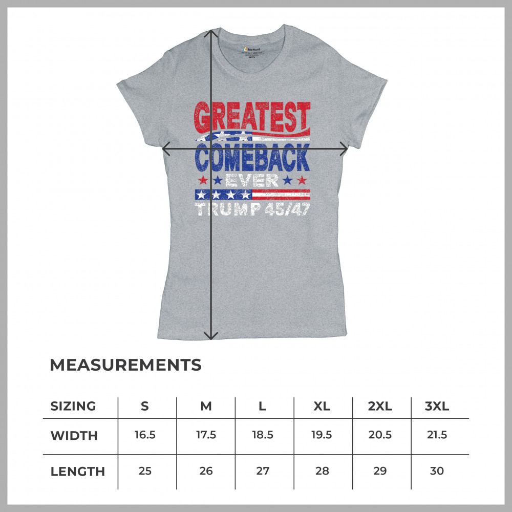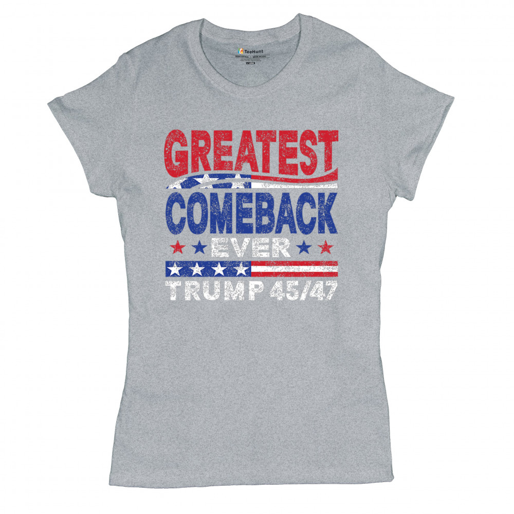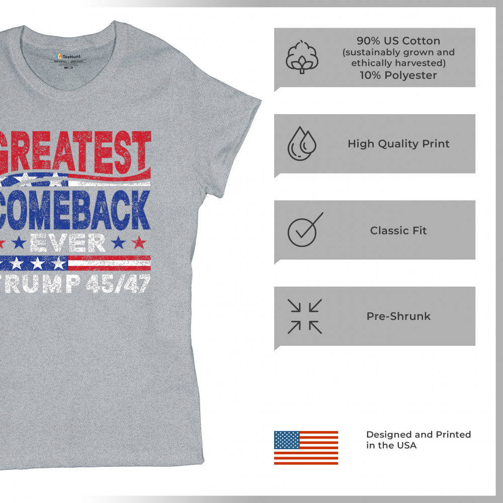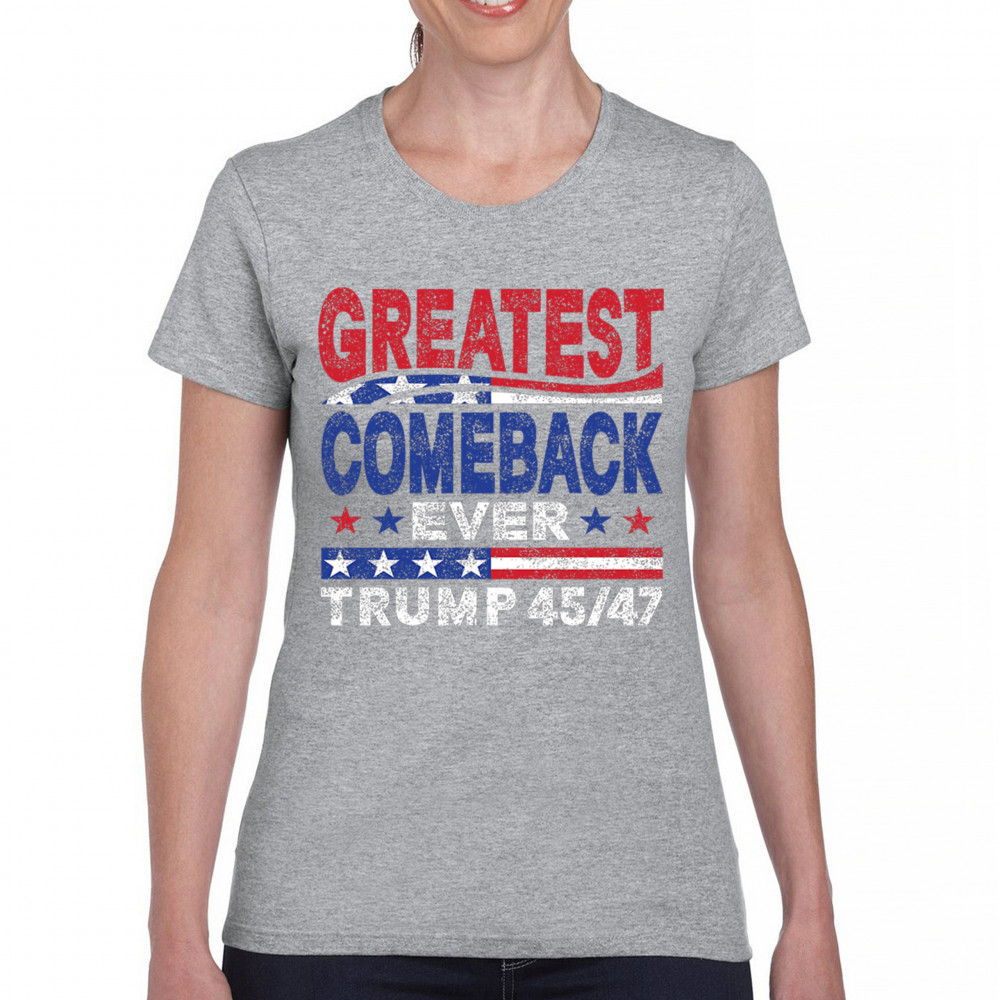 The "Greatest Comeback Ever" design is a tribute to resilience, patriotism, and the fight for American values. Featuring bold patriotic colors and a slogan that embodies the spirit of victory, this design is perfect for Trump supporters and conservatives who believe in never surrendering. Celebrate the leadership of Donald J. Trump as the 45th and 47th president and join the movement for America's future.