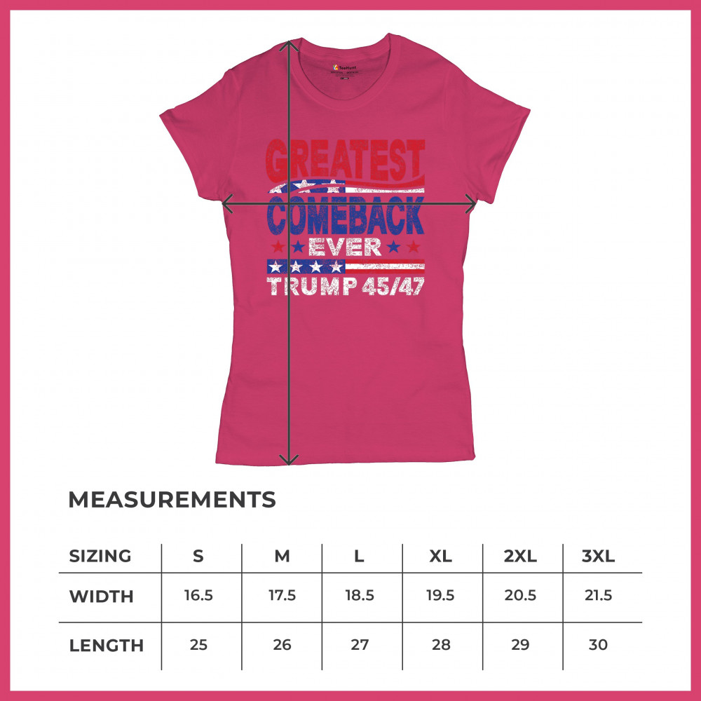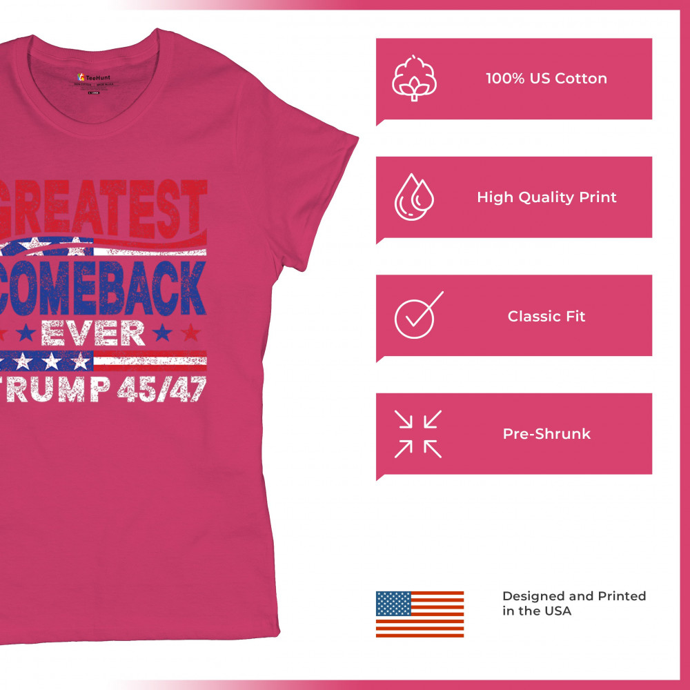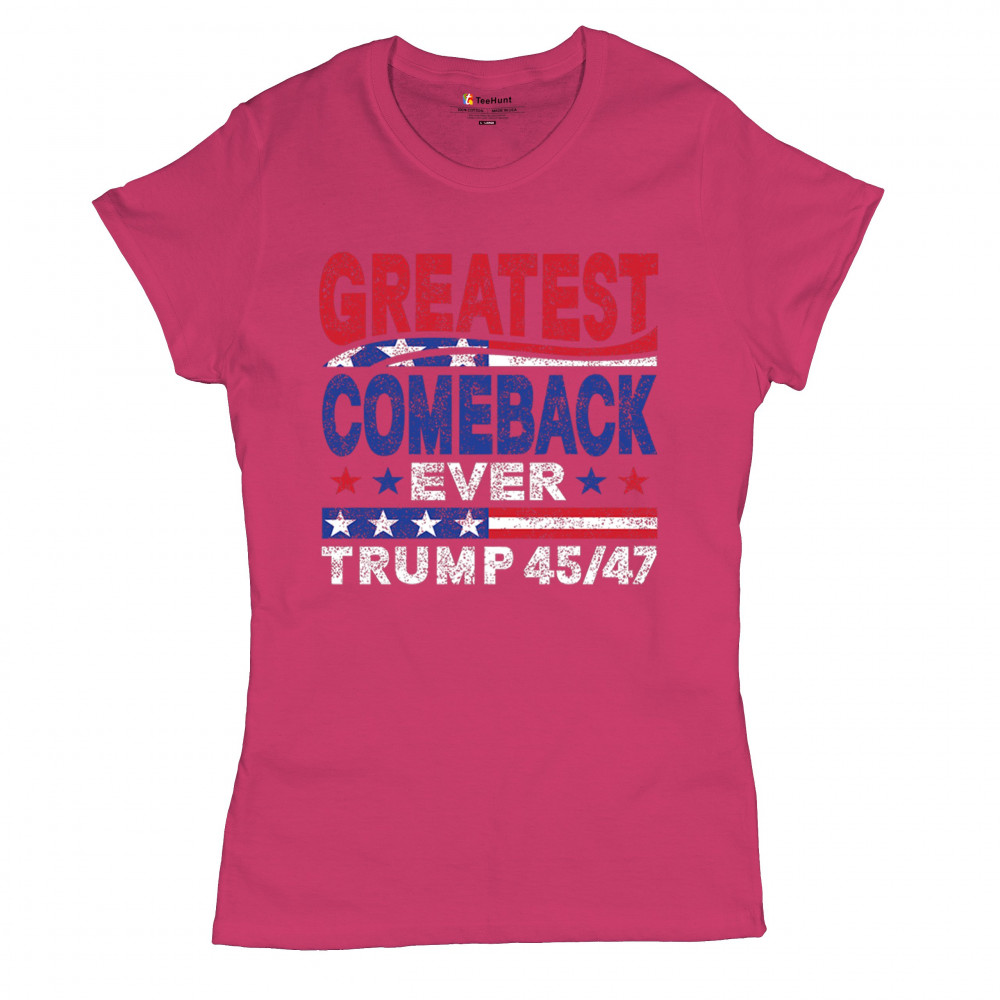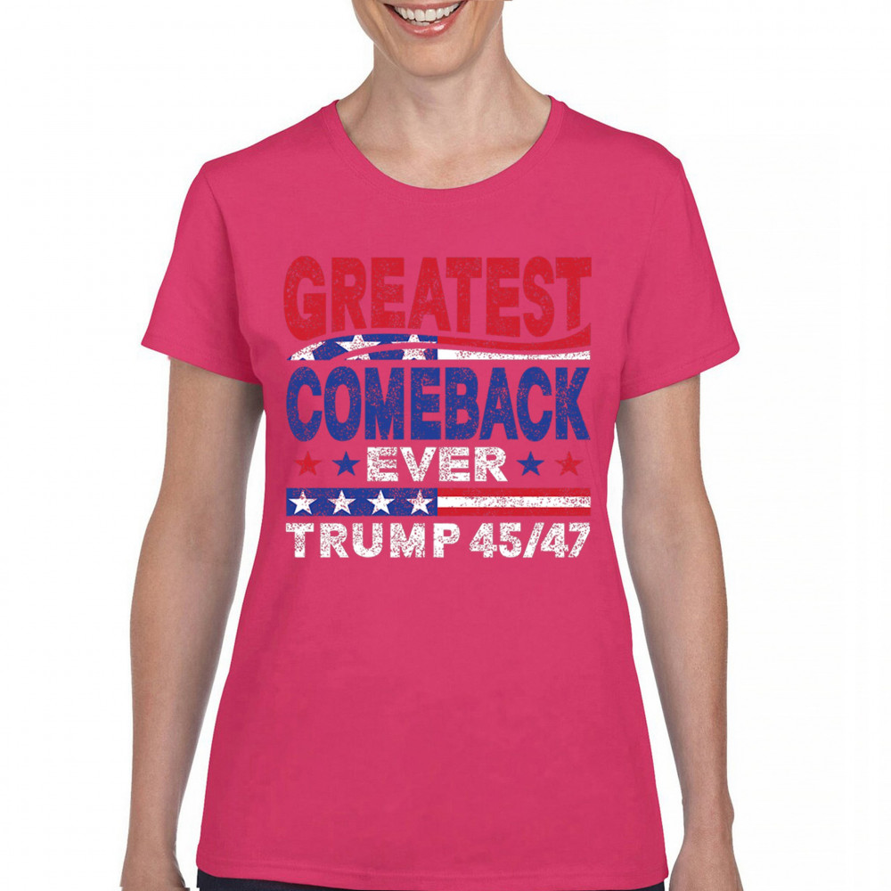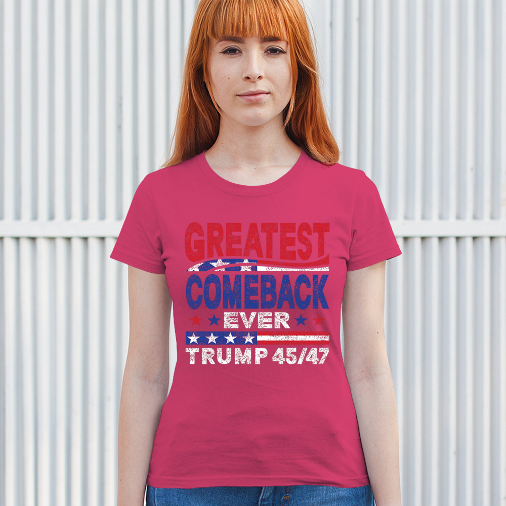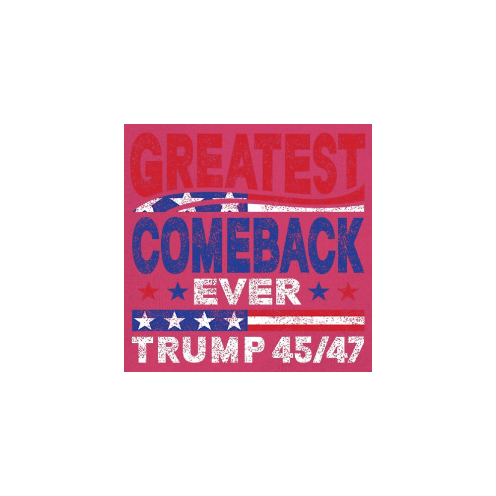 The "Greatest Comeback Ever" design is a tribute to resilience, patriotism, and the fight for American values. Featuring bold patriotic colors and a slogan that embodies the spirit of victory, this design is perfect for Trump supporters and conservatives who believe in never surrendering. Celebrate the leadership of Donald J. Trump as the 45th and 47th president and join the movement for America's future.