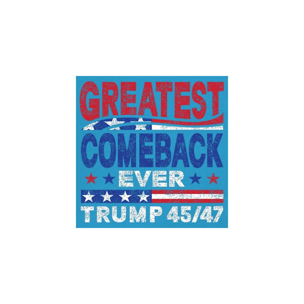 The "Greatest Comeback Ever" design is a tribute to resilience, patriotism, and the fight for American values. Featuring bold patriotic colors and a slogan that embodies the spirit of victory, this design is perfect for Trump supporters and conservatives who believe in never surrendering. Celebrate the leadership of Donald J. Trump as the 45th and 47th president and join the movement for America's future.