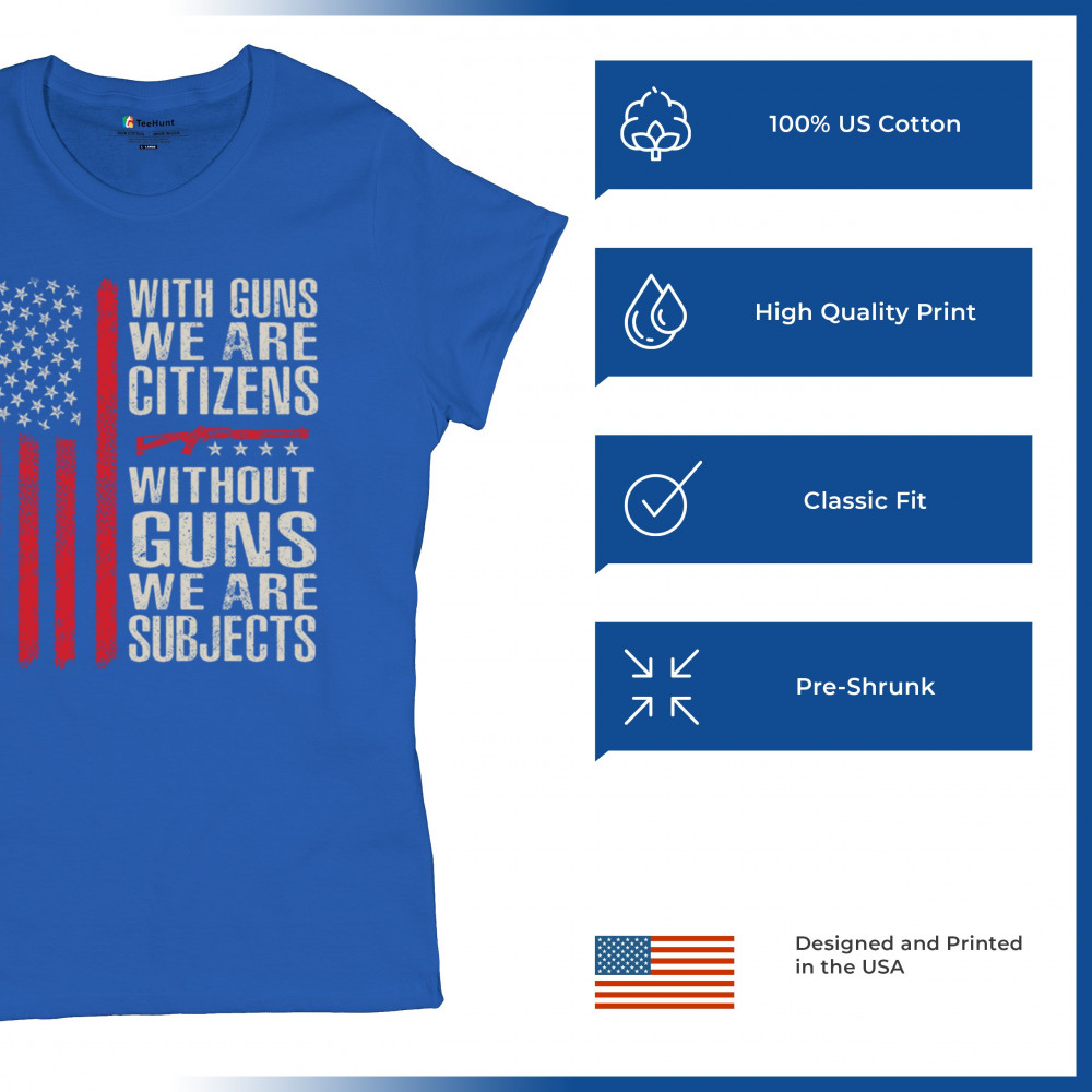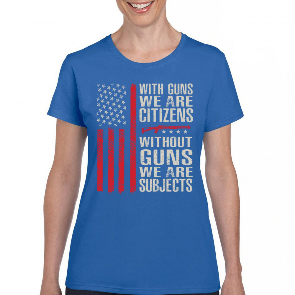 Pro-2A design with AR-15, red flag, and bold quote “With Guns We Are Citizens.†Perfect for patriots, protestors, and liberty-minded Americans.