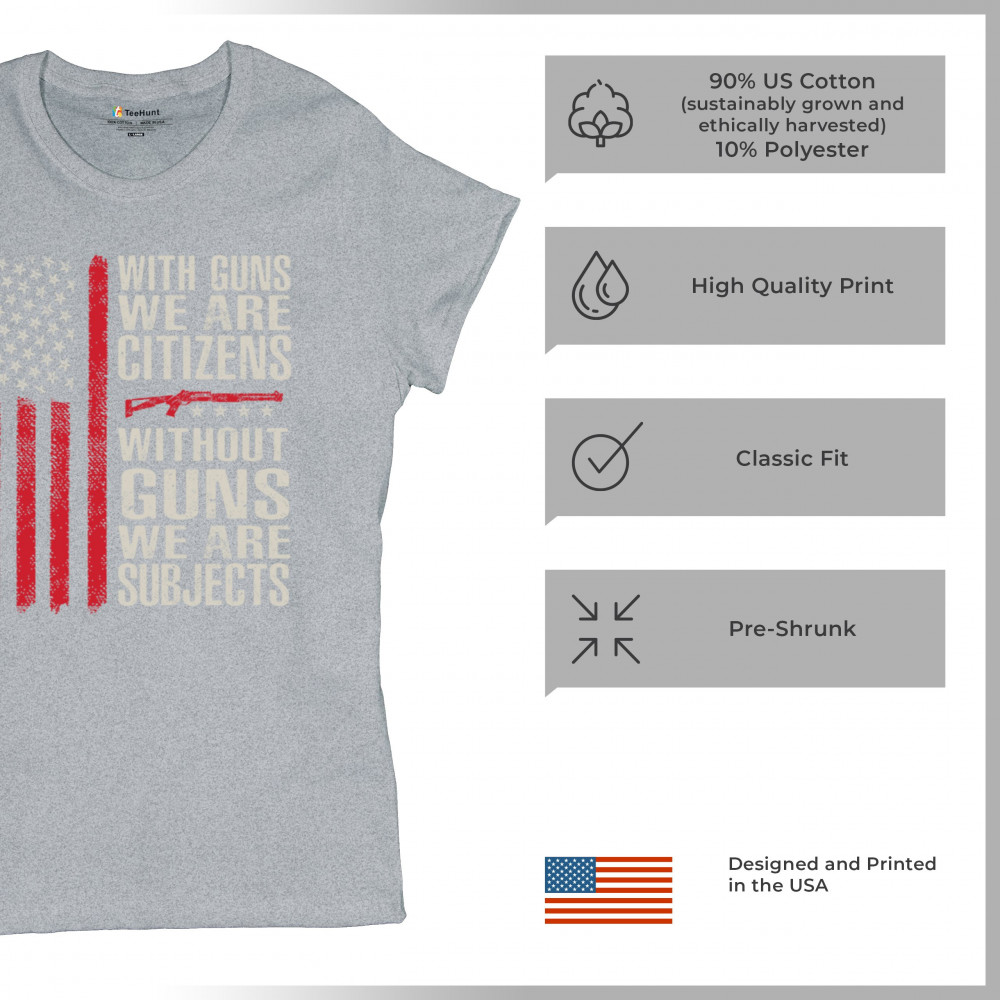 Pro-2A design with AR-15, red flag, and bold quote “With Guns We Are Citizens.†Perfect for patriots, protestors, and liberty-minded Americans.