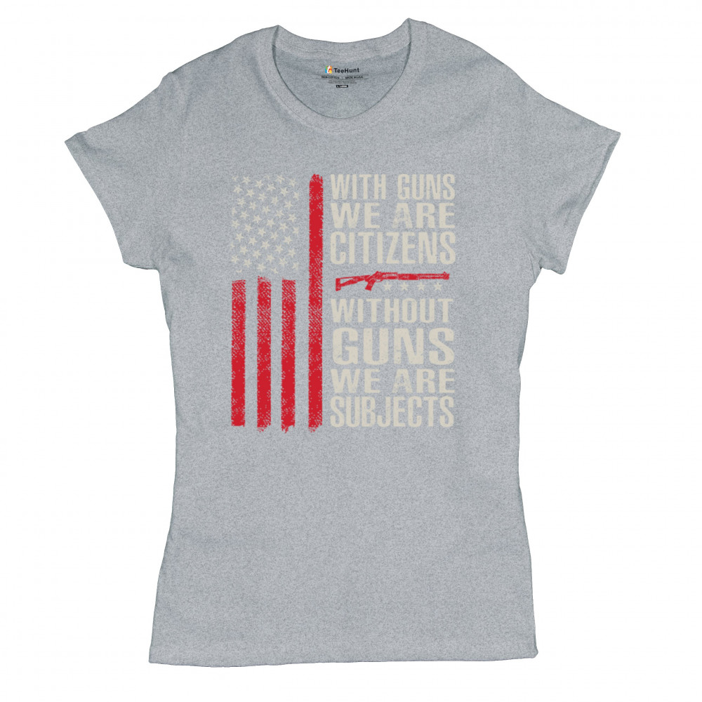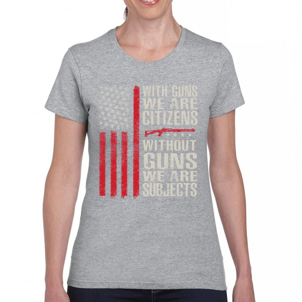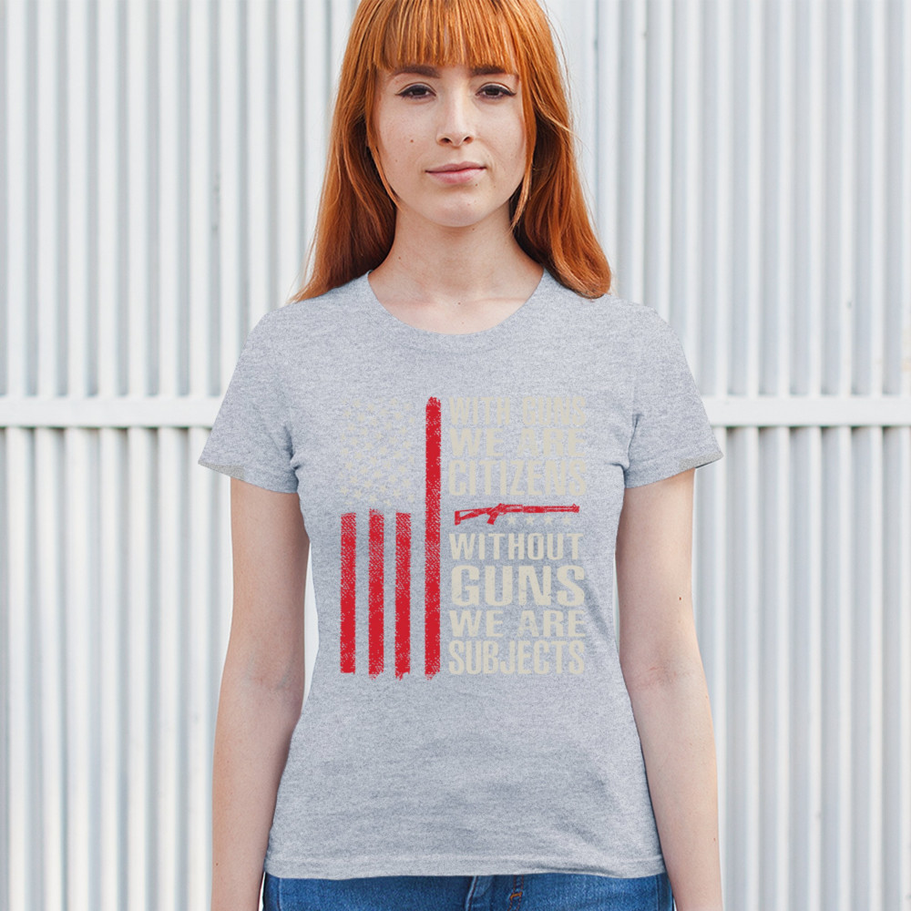 Make your voice heard with this powerful pro-2A design featuring an AR-15 graphic and distressed red American flag. The quote “With Guns We Are Citizens, Without Guns We Are Subjects†speaks directly to the heart of liberty and personal defense. A must-have for patriots, protestors, and gun rights supporters who defend the Constitution.