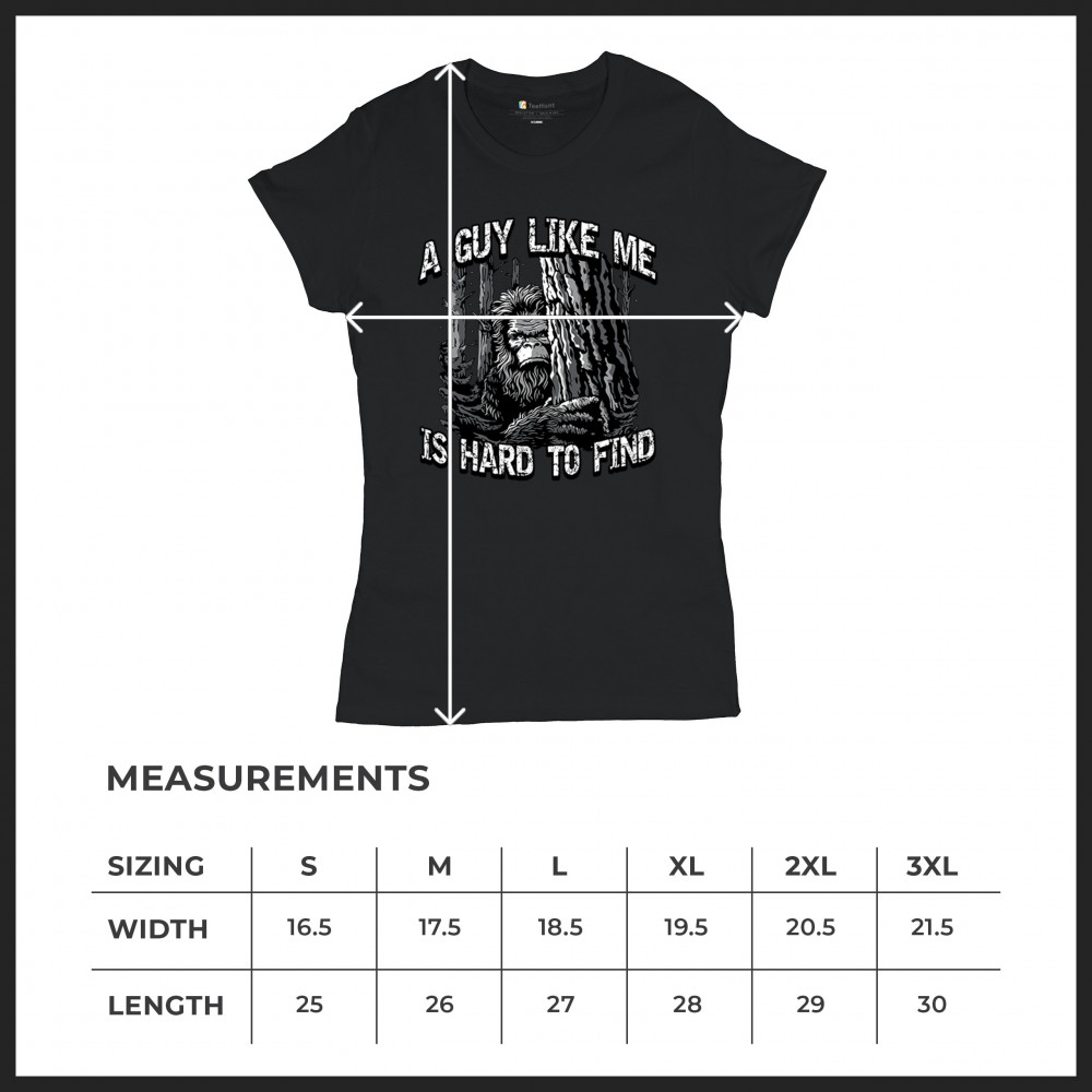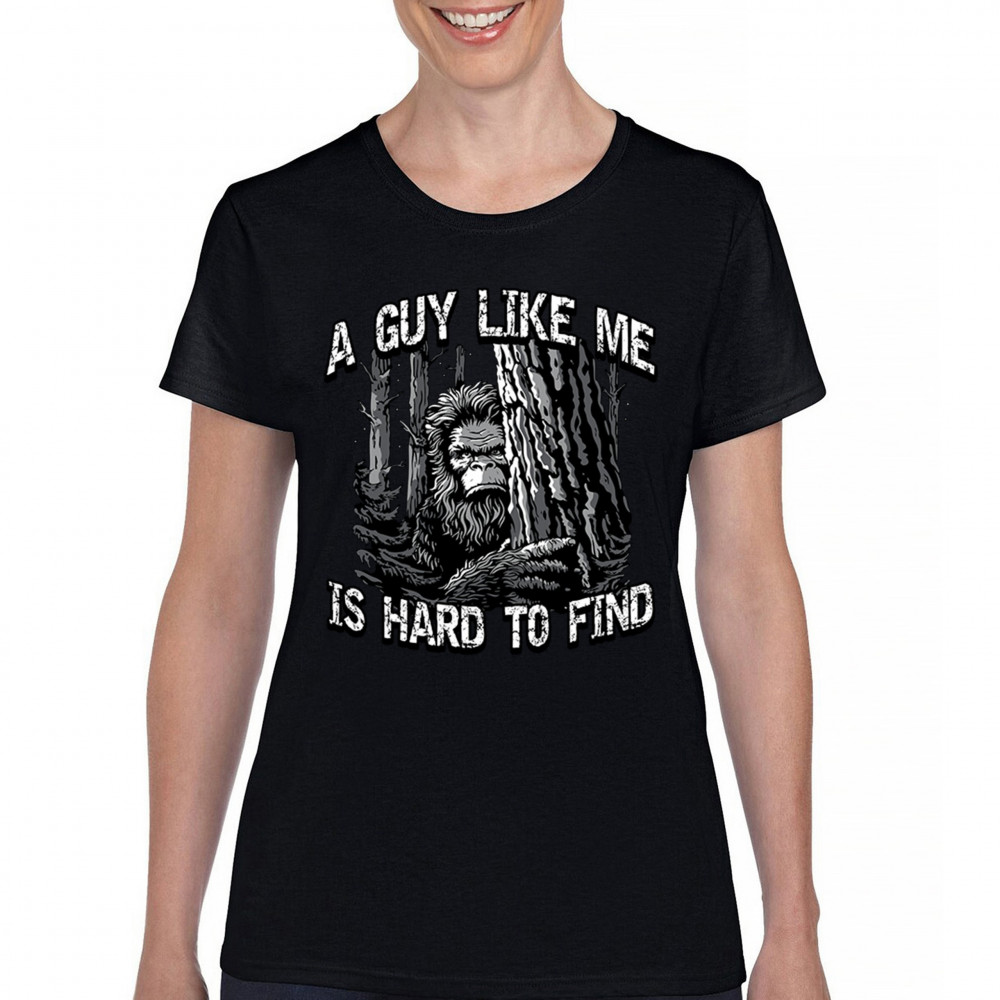 GUY LIKE ME IS HARD TO FIND t-shirt bigfoot sasquatch has champ women's tee black