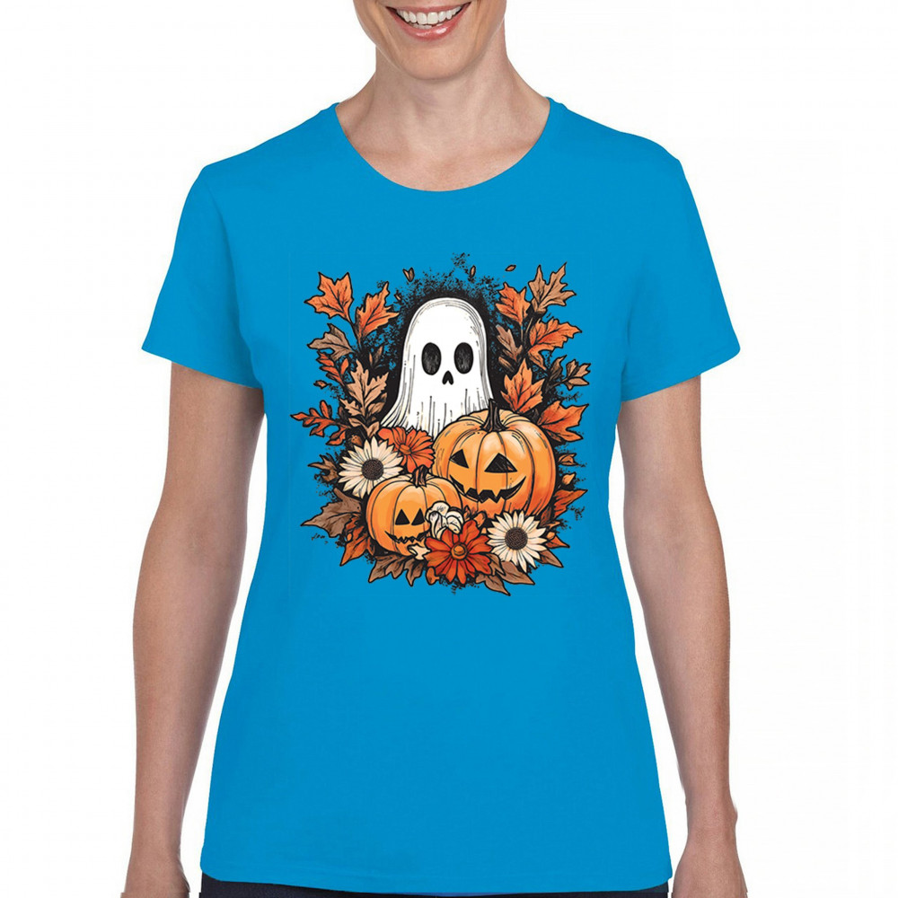 Celebrate the arrival of fall with this delightful design featuring pumpkins, autumn leaves, flowers, and a cute ghost. It's the perfect addition to your Halloween and autumn-themed wardrobe, or even as decor to welcome the fall spirit into your home. The combination of spooky and cozy elements creates a festive yet warm vibe, ideal for Halloween parties, pumpkin patch trips, or just enjoying the beautiful fall season.