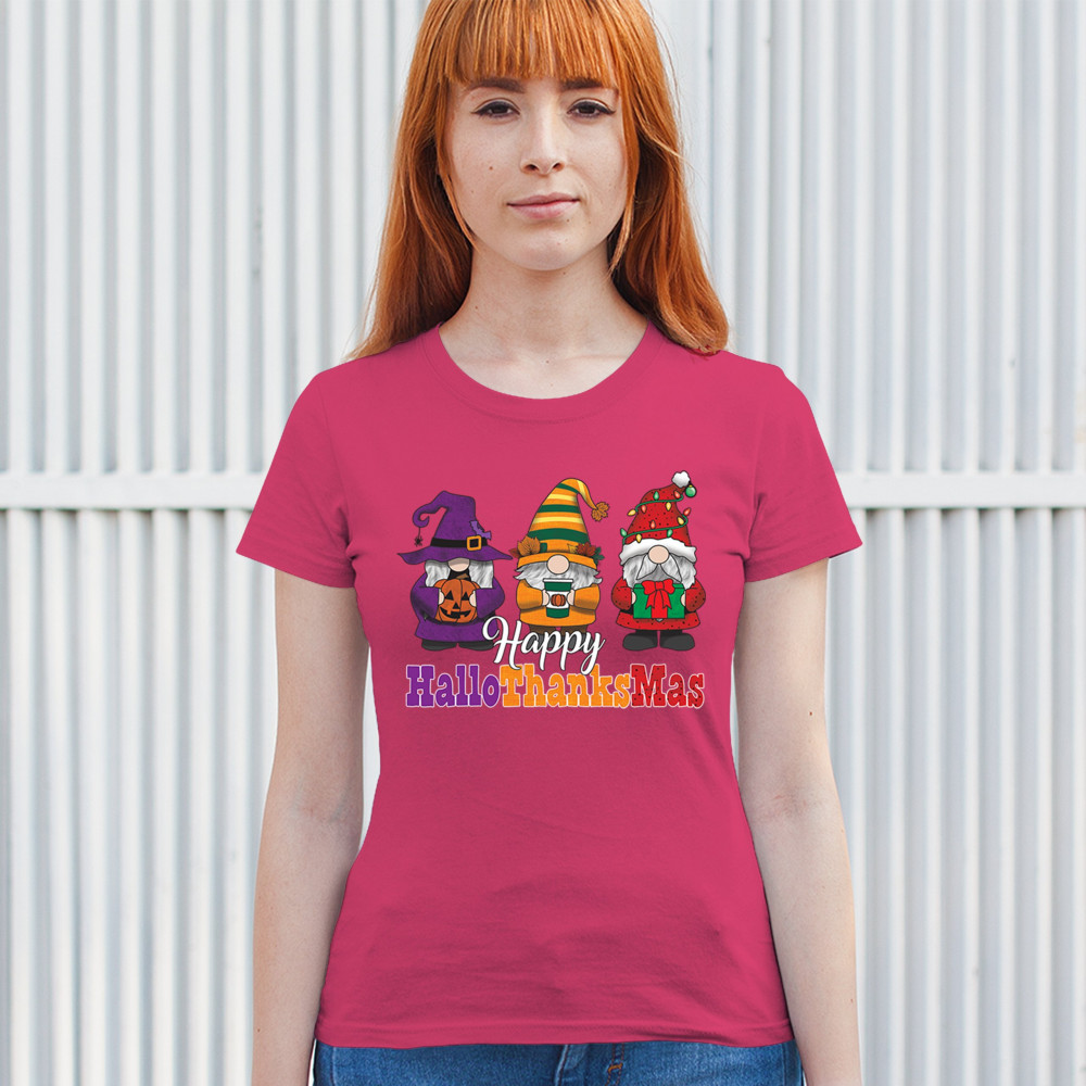 Celebrate the season of HalloThanksMas with this playful gnome design – perfect for Halloween, Thanksgiving, and Christmas festivities!