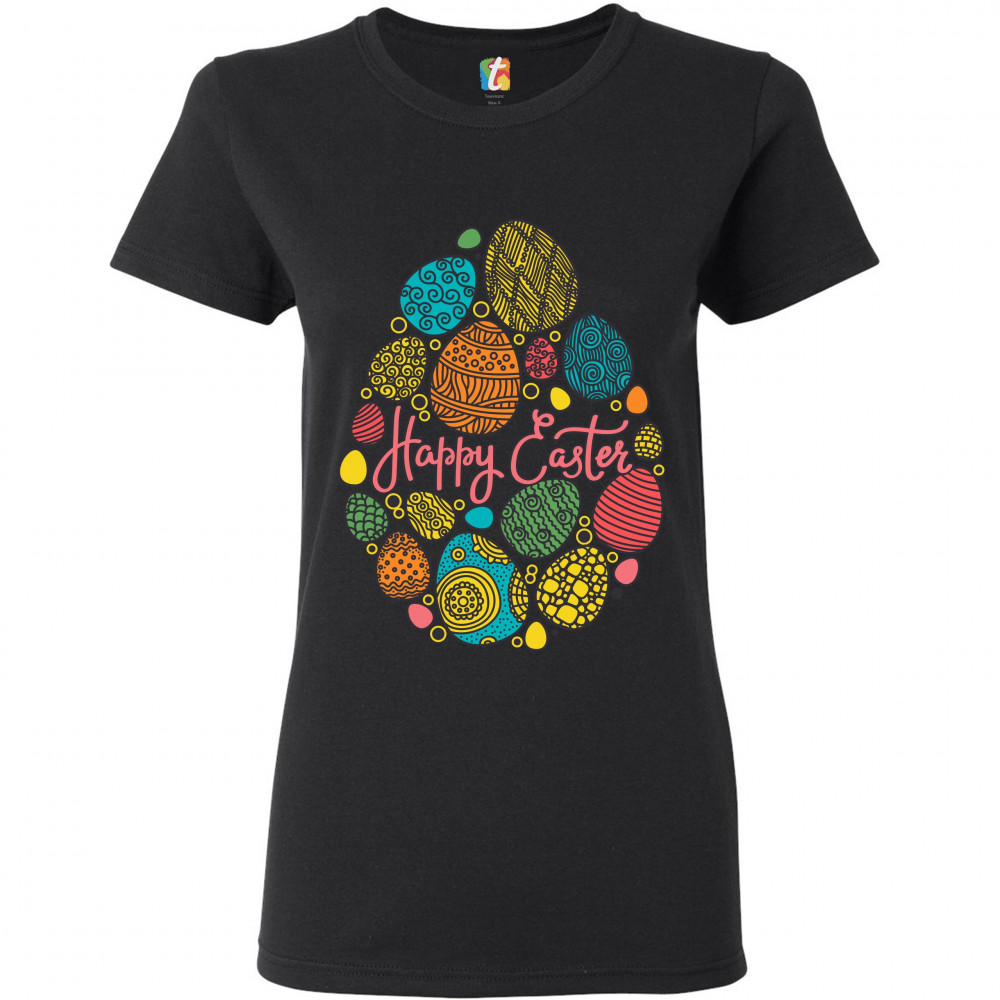 HAPPY EASTER t-shirt pascha easter eggs jesus ressurection sunday women's tee black