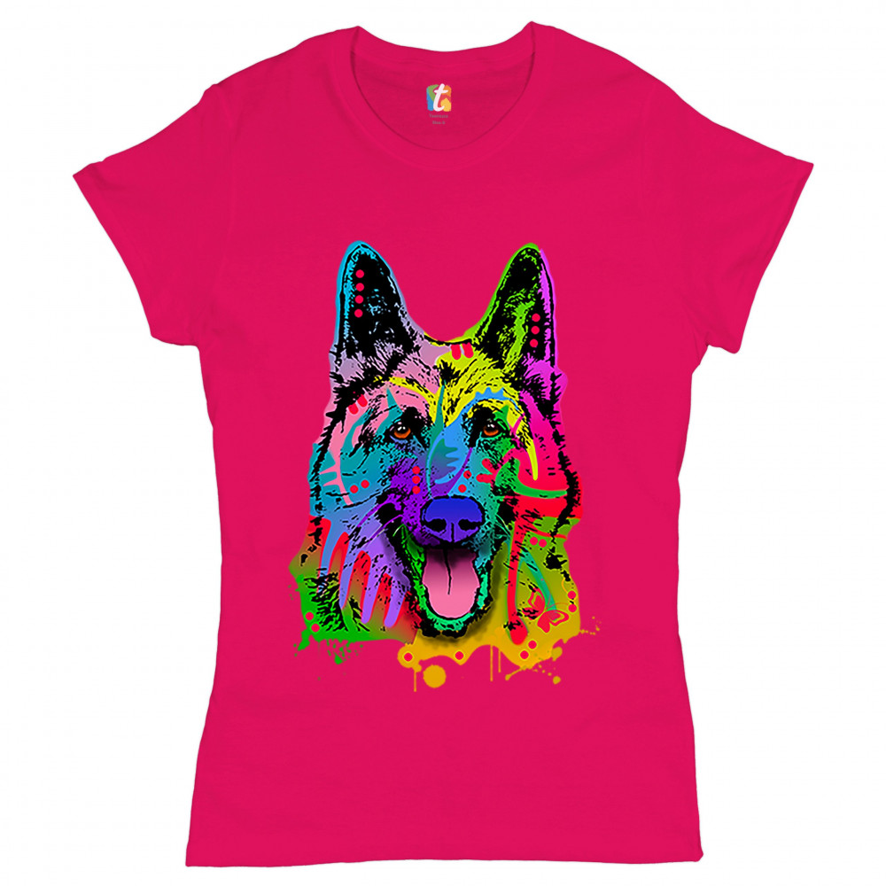 HAPPY GERMAN SHEPHERD t-shirt andy maxx i love my dog best friend women's tee pink