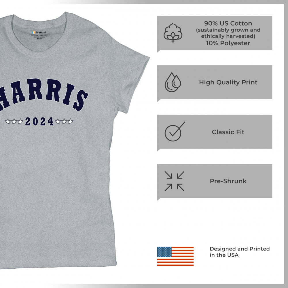 Stand with Kamala Harris and show your support for her 2024 presidential campaign with this striking design. Ideal for anti-Trump supporters, liberals, and democrats, this design features "Harris 2024" in bold lettering. Wear it to rallies, campaign events, or in your daily life to make a strong political statement. This design celebrates the historic possibility of electing the first female president and highlights the importance of representation for black Americans, Hispanic Americans, LGBTQ, and other minority communities. Make your voice heard with this powerful symbol.