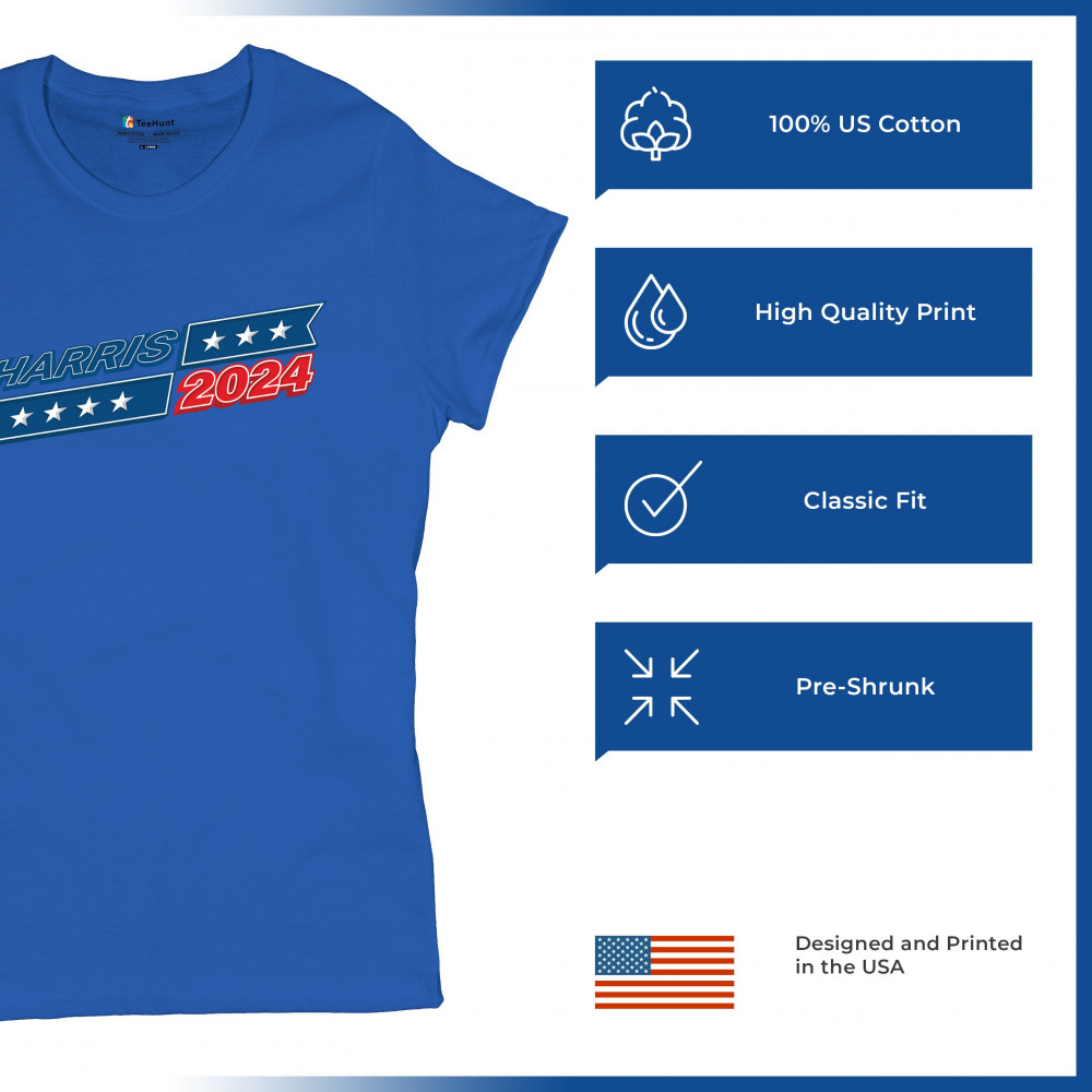 Support Kamala Harris in 2024 with this vibrant, patriotic design. Perfect for rallies, events, and everyday wear, it celebrates progress and diversity.
