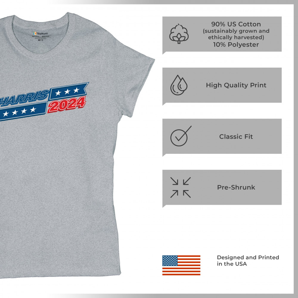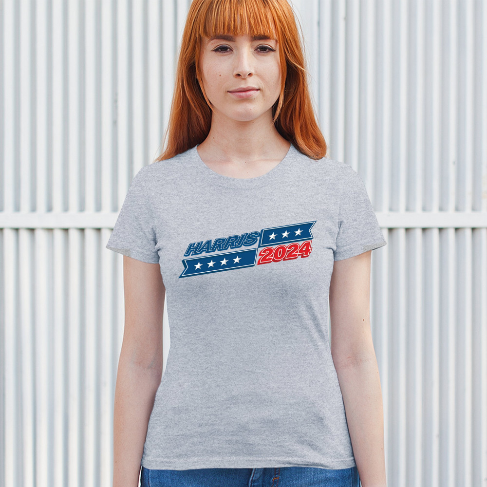 Support Kamala Harris in 2024 with this vibrant, patriotic design. Perfect for rallies, events, and everyday wear, it celebrates progress and diversity.