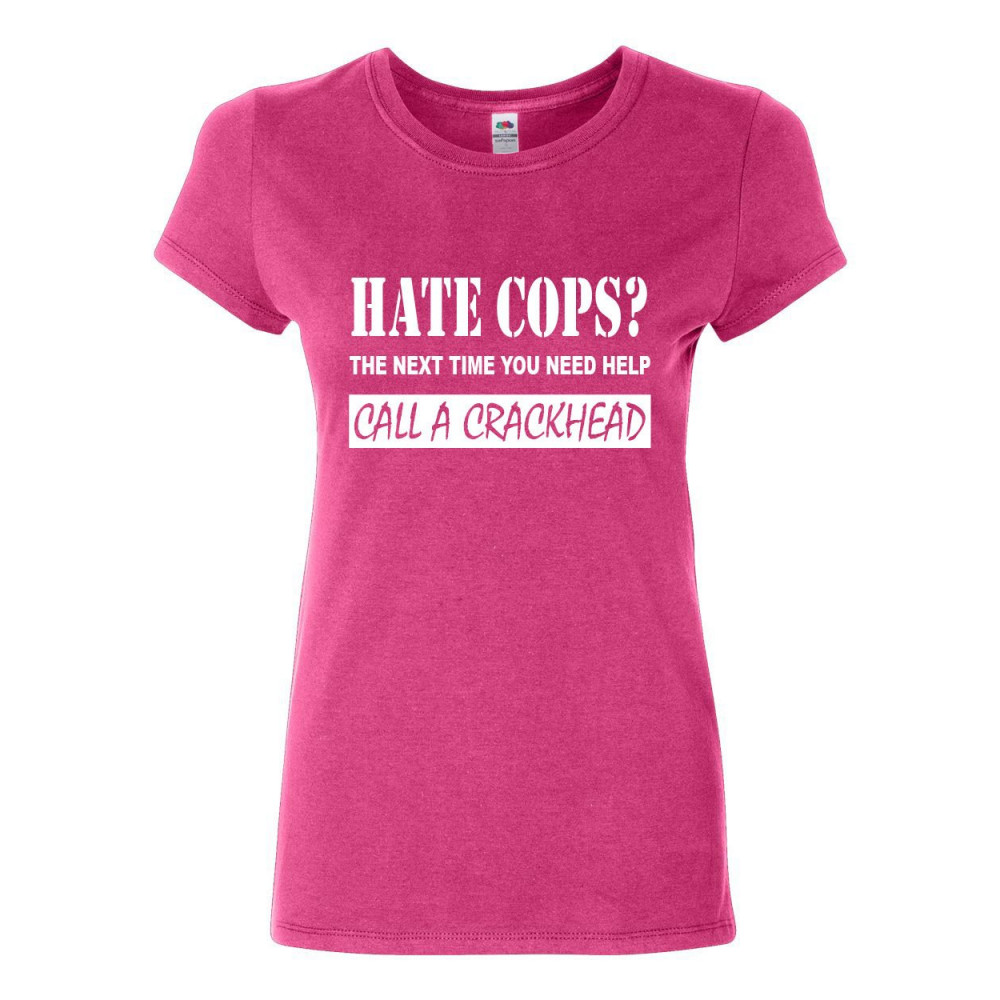 HATE COPS? CALL A CRACKHEAD cotton t-shirt funny police pink