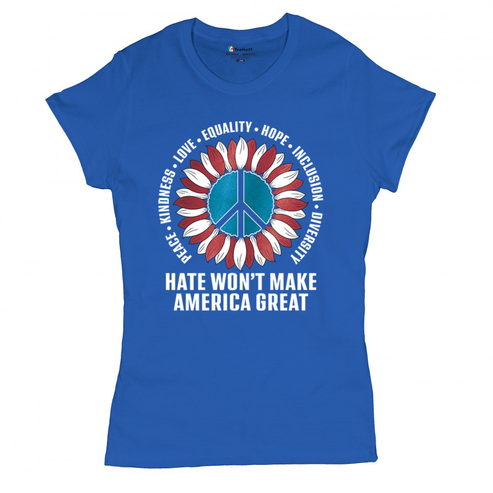 Embrace the message of love, equality, and unity with this eye-catching design. The sunflower and peace symbol represent a commitment to kindness and inclusion, rejecting hate and division. Perfect for those who support liberal values, this design is a bold statement against negativity and for a brighter future. Wear it proudly to show your belief in a diverse, united America. Let this design be a symbol of hope and progress for all.
