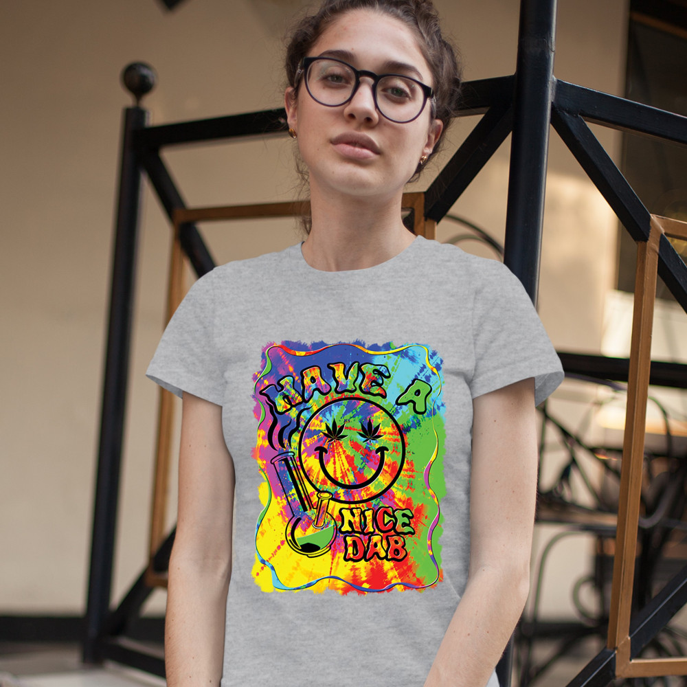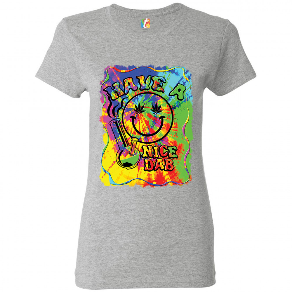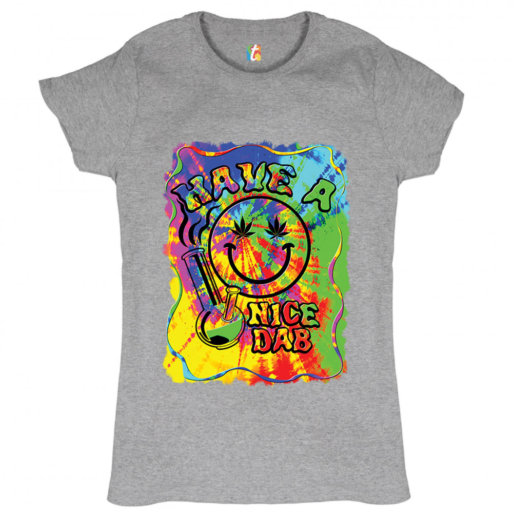 HAVE A NICE DAB t-shirt 420 happy face hitting marijuana weed bong women's tee gray