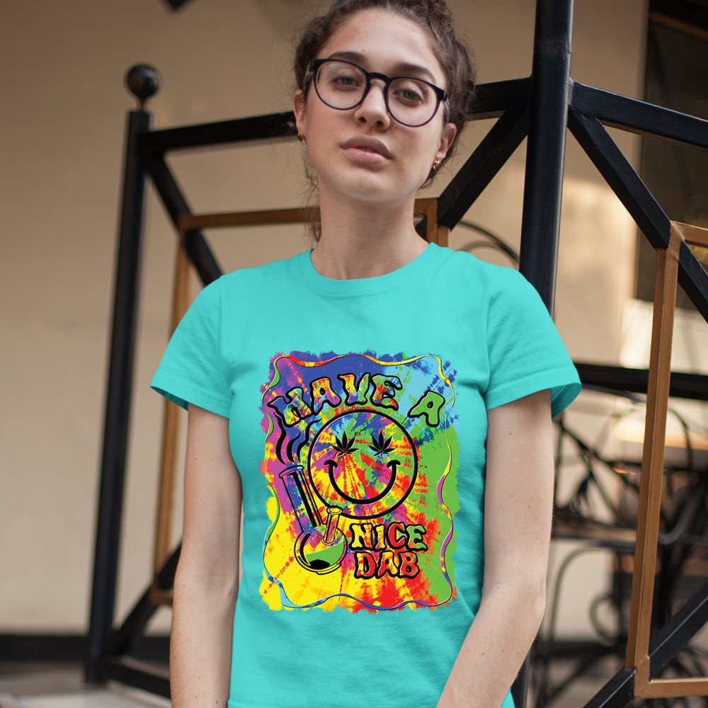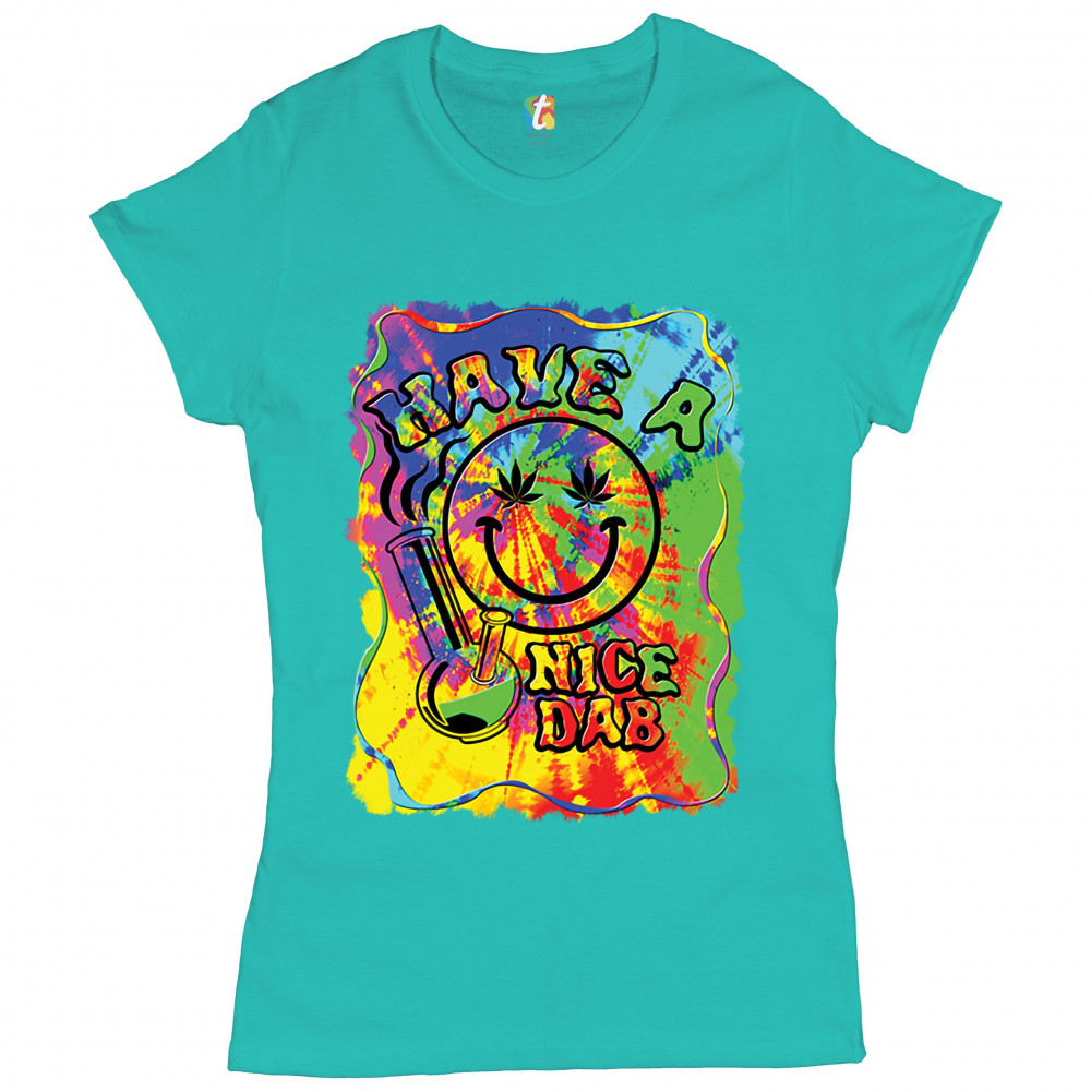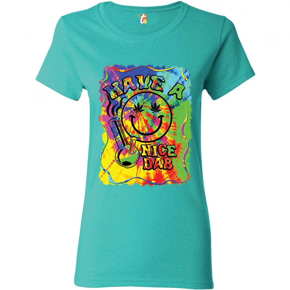 HAVE A NICE DAB t-shirt 420 happy face hitting marijuana weed bong women's tee light blue