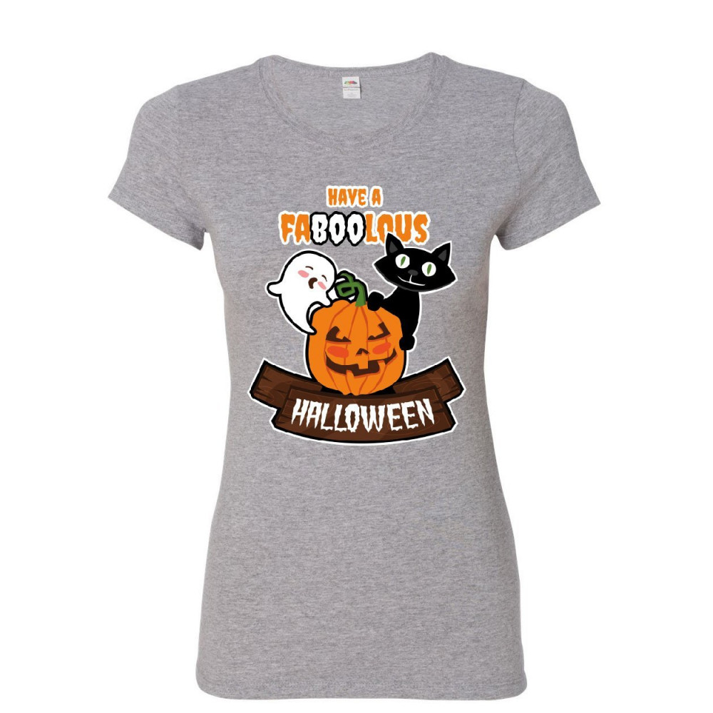 HAVE A FABOOLOUS HALLOWEEN have faboolous halloween women's t-shirt funny ghost pumpkin black cat shirt gray