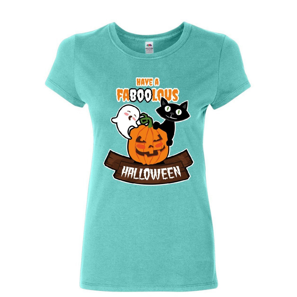 HAVE A FABOOLOUS HALLOWEEN have faboolous halloween women's t-shirt funny ghost pumpkin black cat shirt light blue