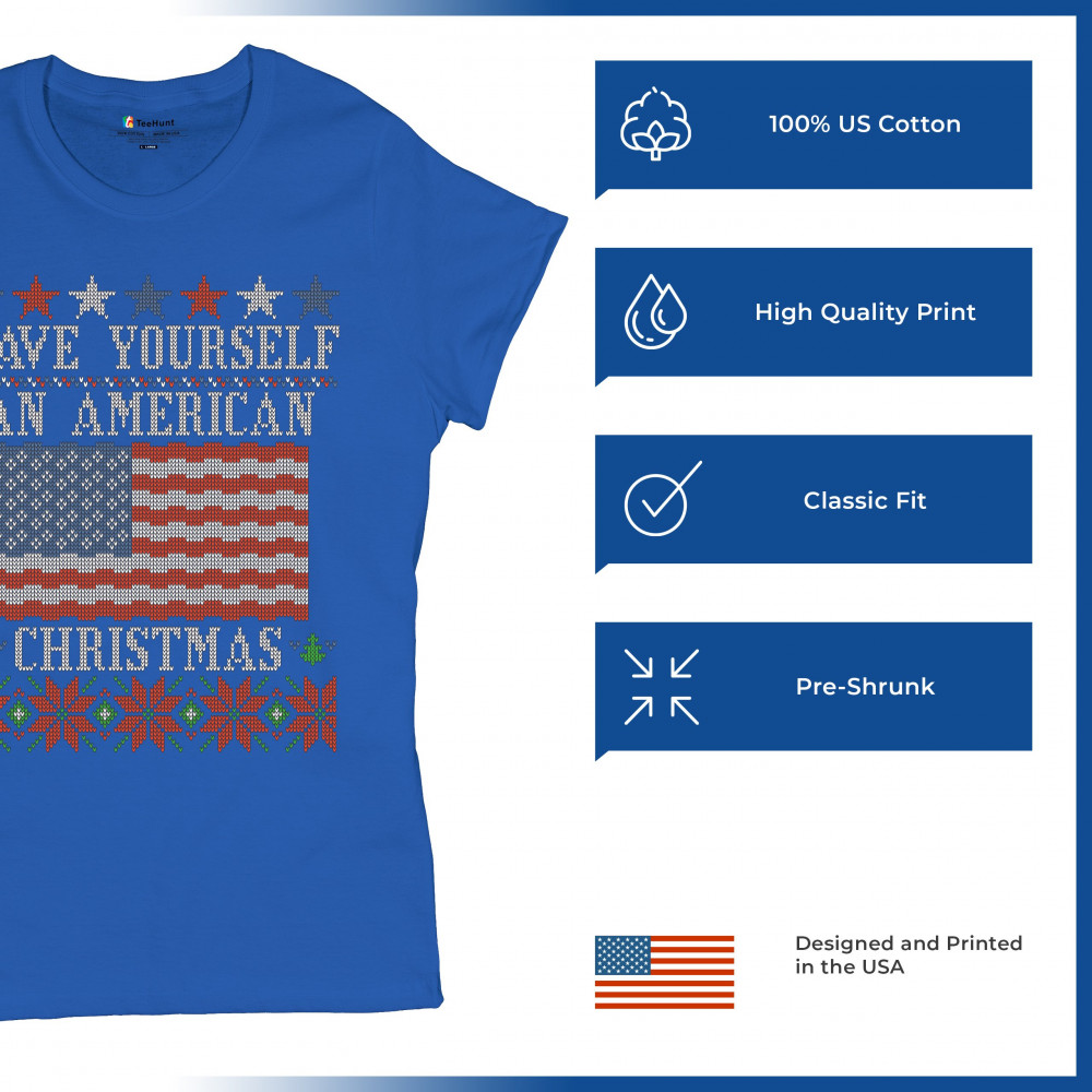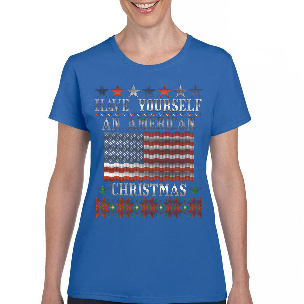 HAVE YOURSELF AN AMERICAN CHRISTMAS t-shirt ugly sweater patriotic women's tee royal blue