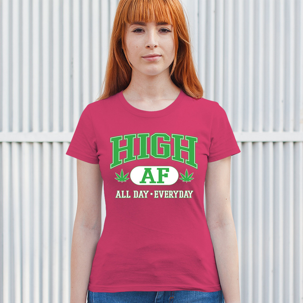 Stay lifted in style with this HIGH AF design, complete with bold letters, cannabis leaves, and the iconic “All Day · Everyday†slogan. It’s a loud, funny, and chill tribute to the 420 lifestyle—perfect for stoners, festival goers, and herb-loving free spirits who wear their vibe with pride.