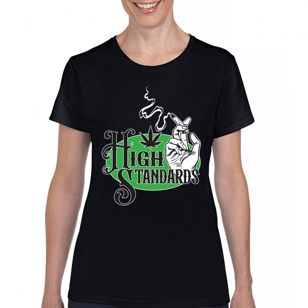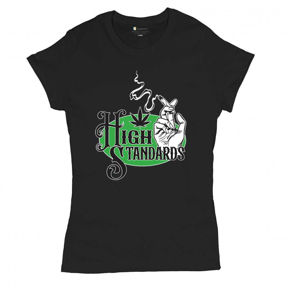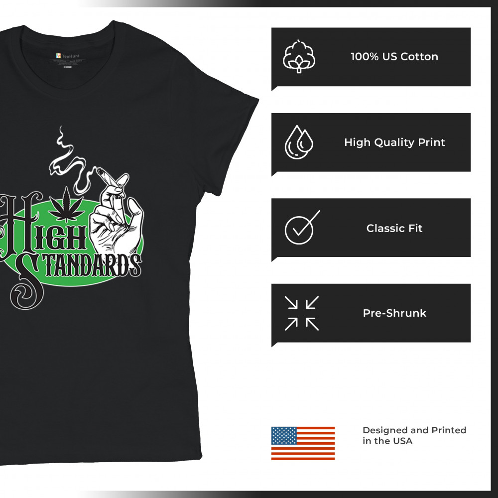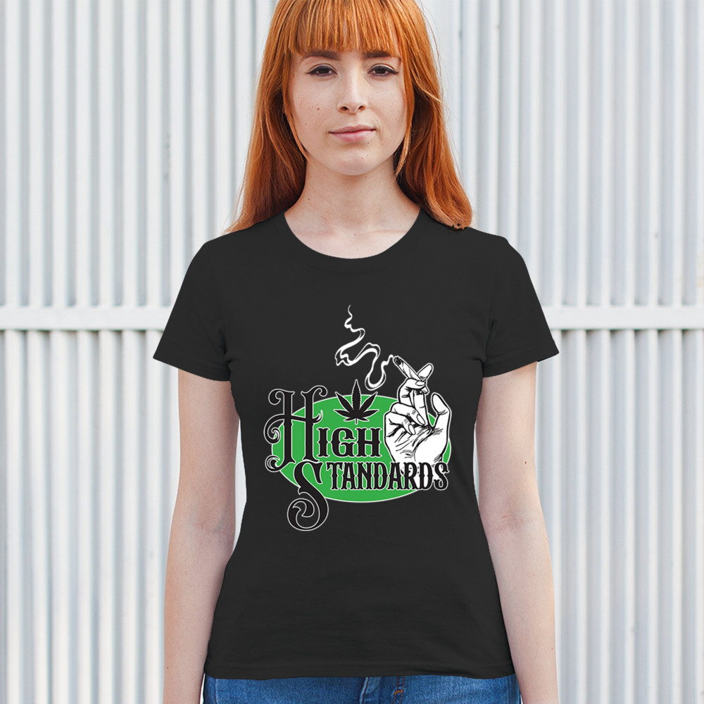 High Standards weed design with blunt humor and stoner pride. Features joint, cannabis leaf, pothead attitude, and classy chillout vibes.