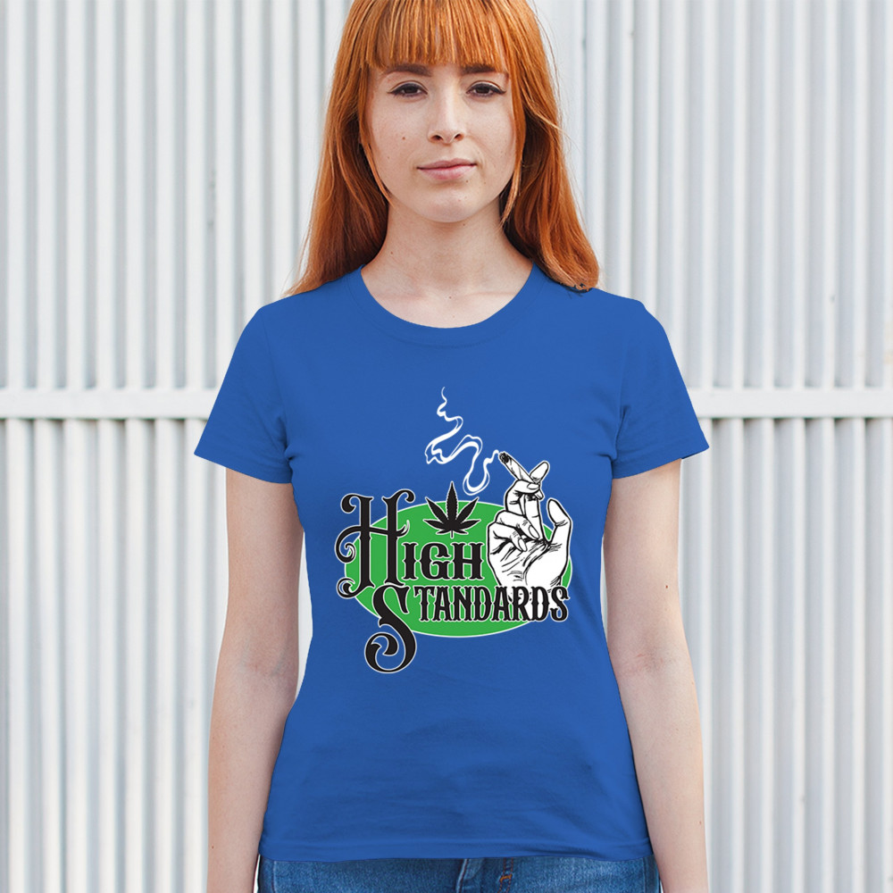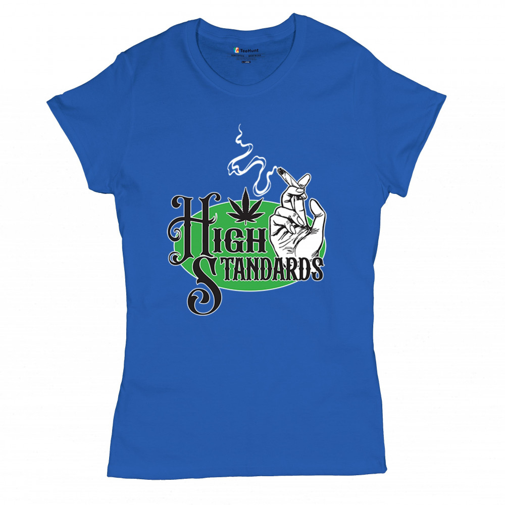 High Standards weed design with blunt humor and stoner pride. Features joint, cannabis leaf, pothead attitude, and classy chillout vibes.