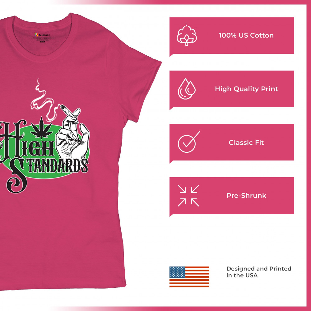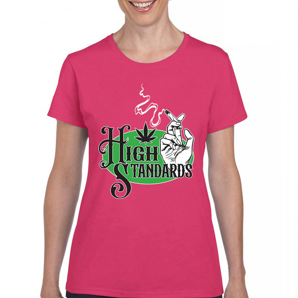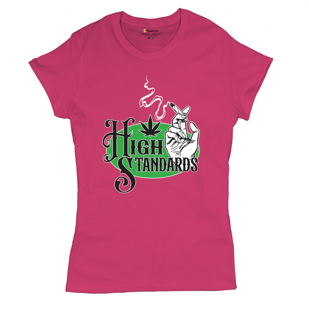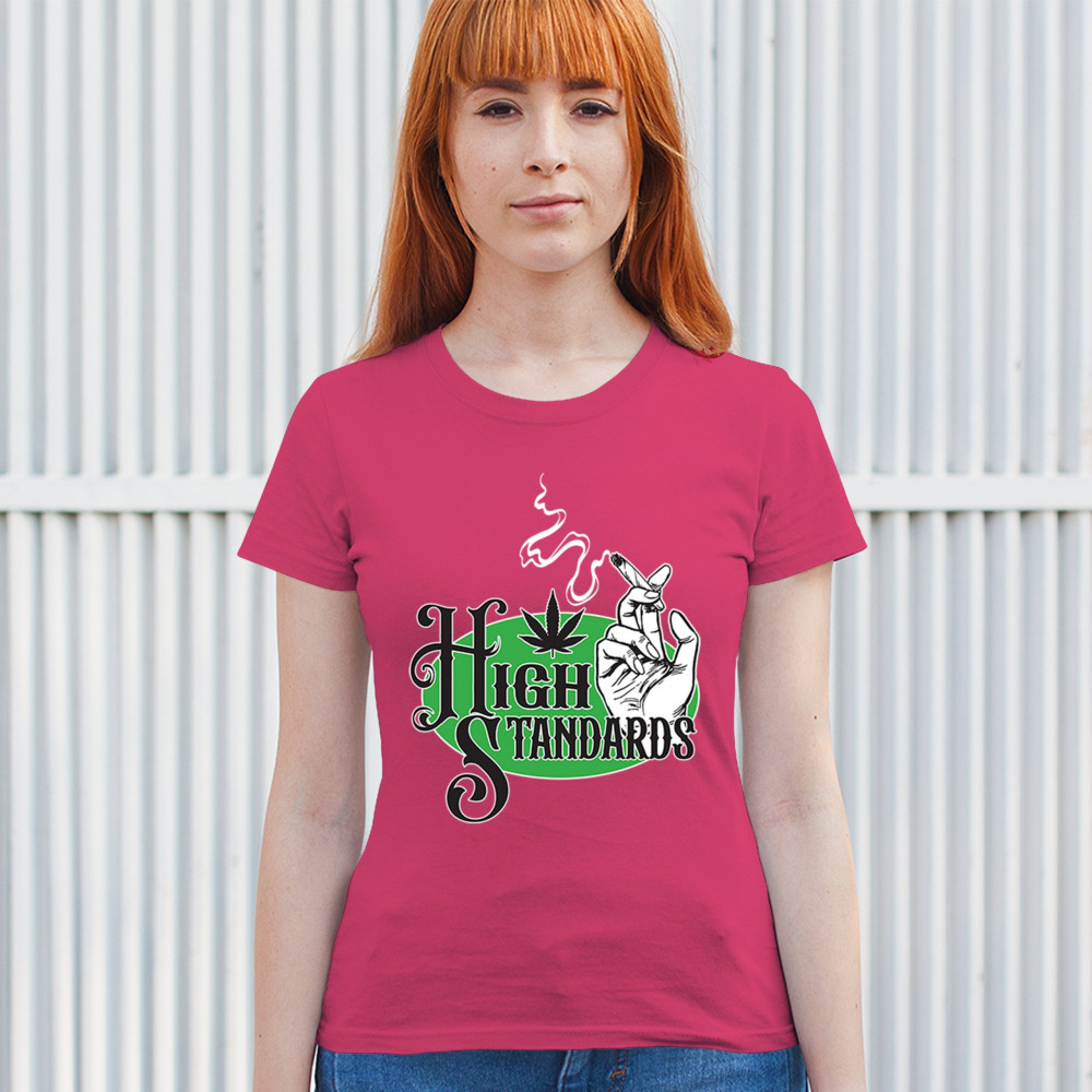 High Standards weed design with blunt humor and stoner pride. Features joint, cannabis leaf, pothead attitude, and classy chillout vibes.