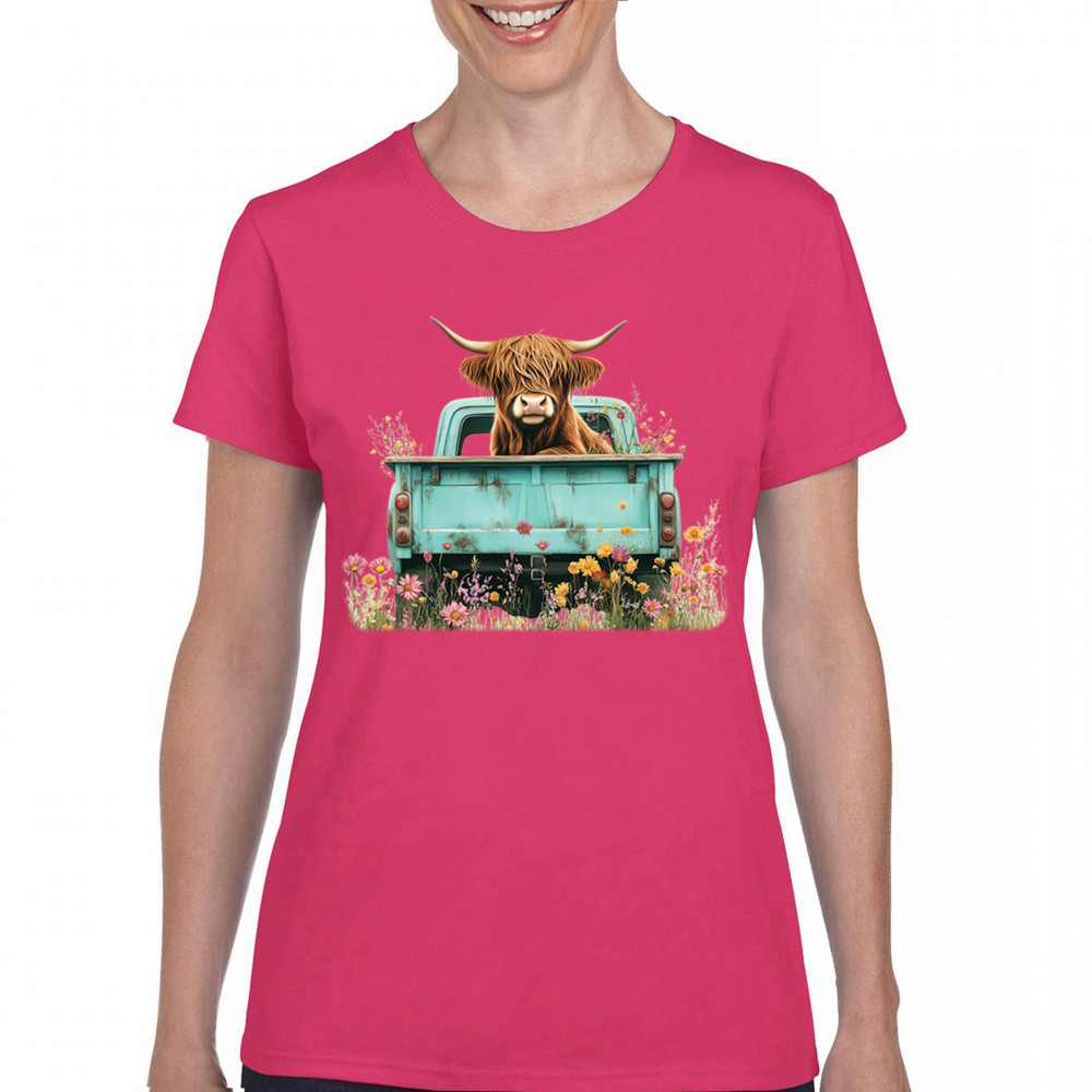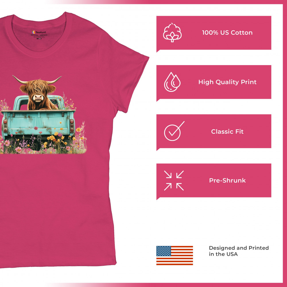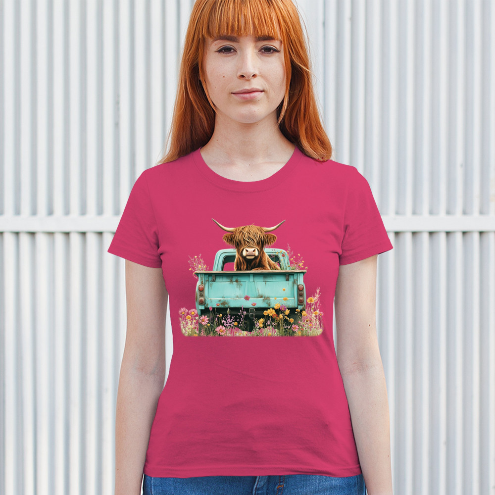 Celebrate rustic charm with this Highland Cow truck design, combining farmhouse floral truck art, boho ranch vibes, and country farmhouse shirt appeal. Perfect for cow lovers, barn style enthusiasts, and small town rural living. A vintage truck cow design that’s both cozy and stylish.