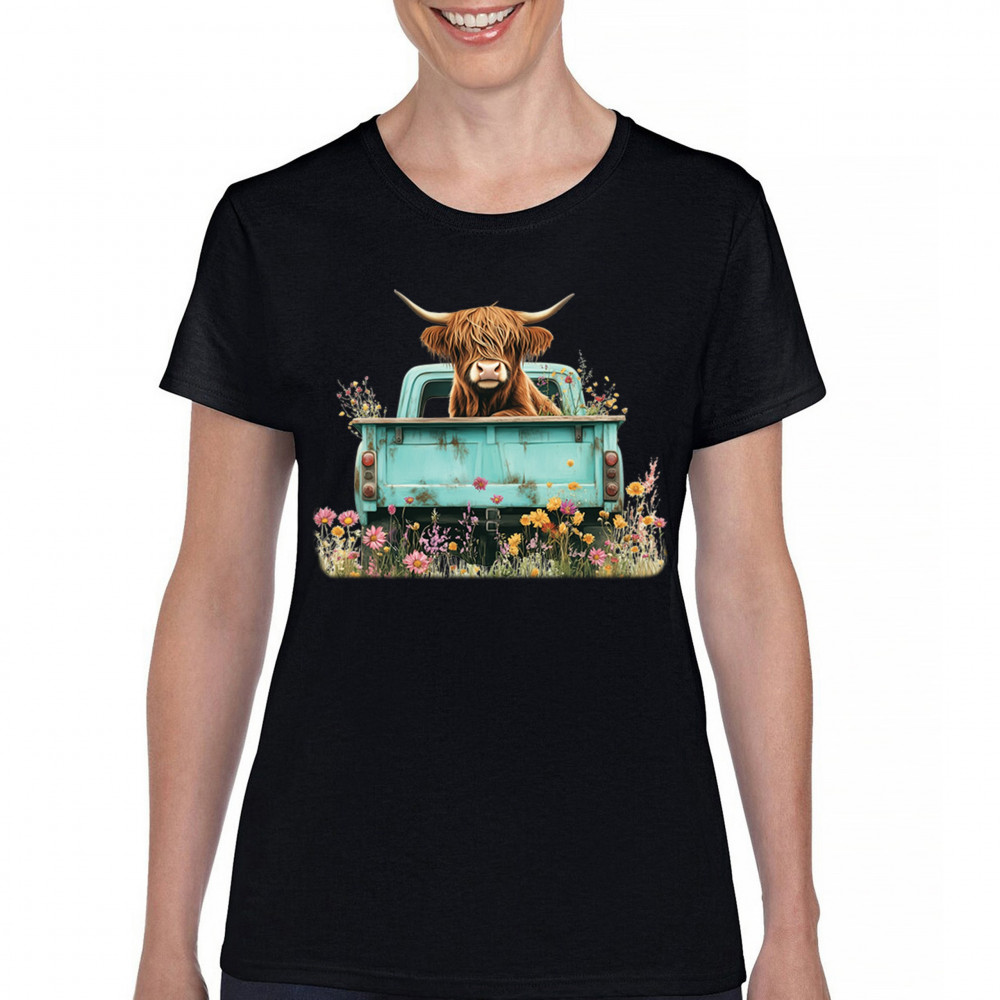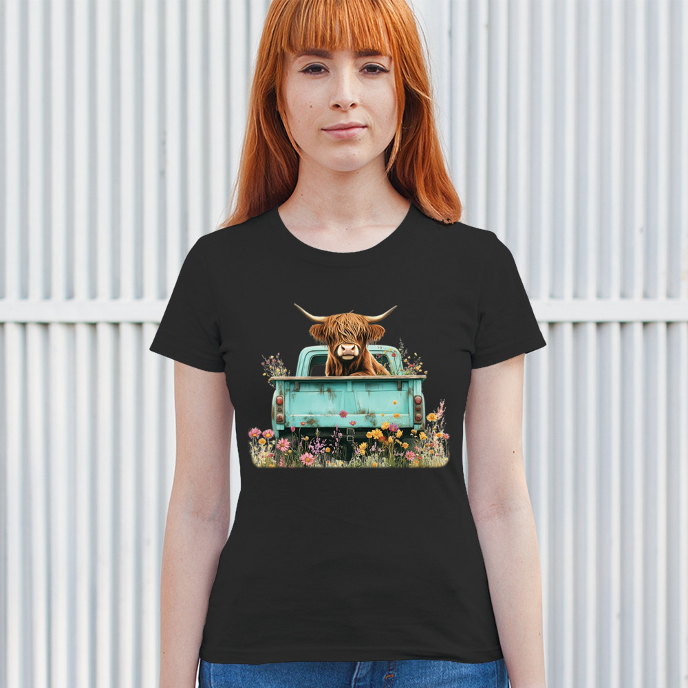 HIGHLAND COW TRUCK t-shirt farmhouse country cowgirl ranch boho women's tee black