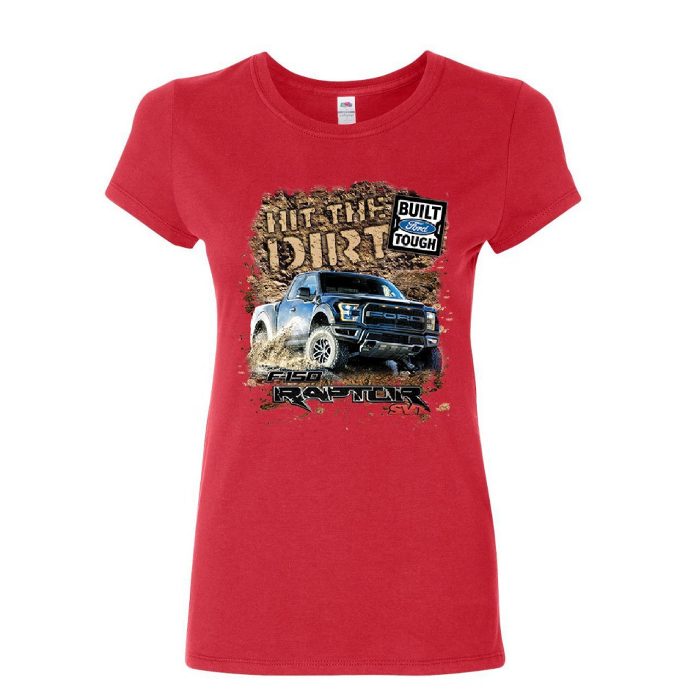 HIT THE DIRT built ford tough women's t-shirt f-150 raptor pickup truck shirt red