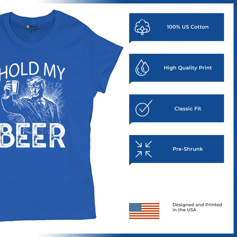 Celebrate the boldness of America First with the "Hold My Beer" design. A tribute to Trump supporters, conservatives, and proud patriots, this graphic humorously encapsulates the resilience and pride of the Red Wave movement. Perfect for rallies, casual gatherings, and those who proudly stand with Donald J. Trump, the 47th President, in the fight for freedom and the people's mandate.