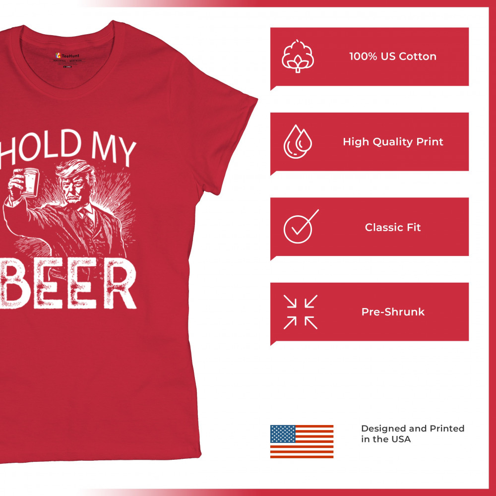 Bold and humorous "Hold My Beer" design for Trump supporters! Celebrate America First, the Red Wave, and Donald J. Trump with this patriotic graphic.