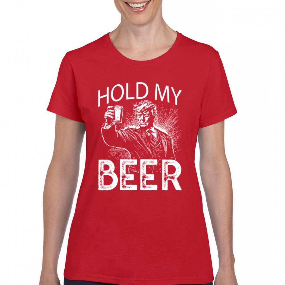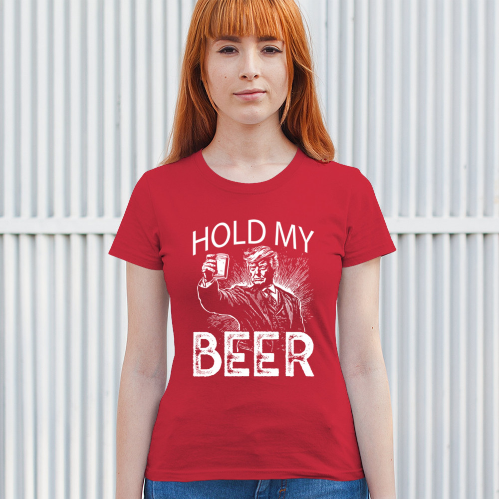 Celebrate the boldness of America First with the "Hold My Beer" design. A tribute to Trump supporters, conservatives, and proud patriots, this graphic humorously encapsulates the resilience and pride of the Red Wave movement. Perfect for rallies, casual gatherings, and those who proudly stand with Donald J. Trump, the 47th President, in the fight for freedom and the people's mandate.
