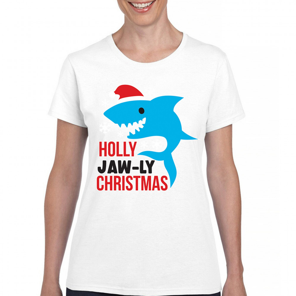 A fun Holly Jaw-ly Christmas design featuring a cheerful shark in a Santa hat with bright snowflake accents. Ideal for beach lovers, ocean fans, pun humor enthusiasts, Christmas parties, festive gatherings, white elephant events, and lighthearted winter celebrations. Brings a playful coastal vibe to holiday season outfits and gifts.