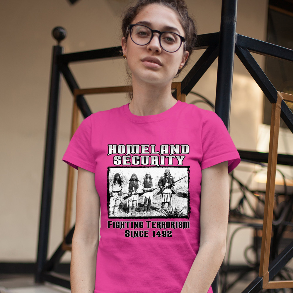 HOMELAND SECURITY t-shirt native american indigenous patriotic women's tee pink